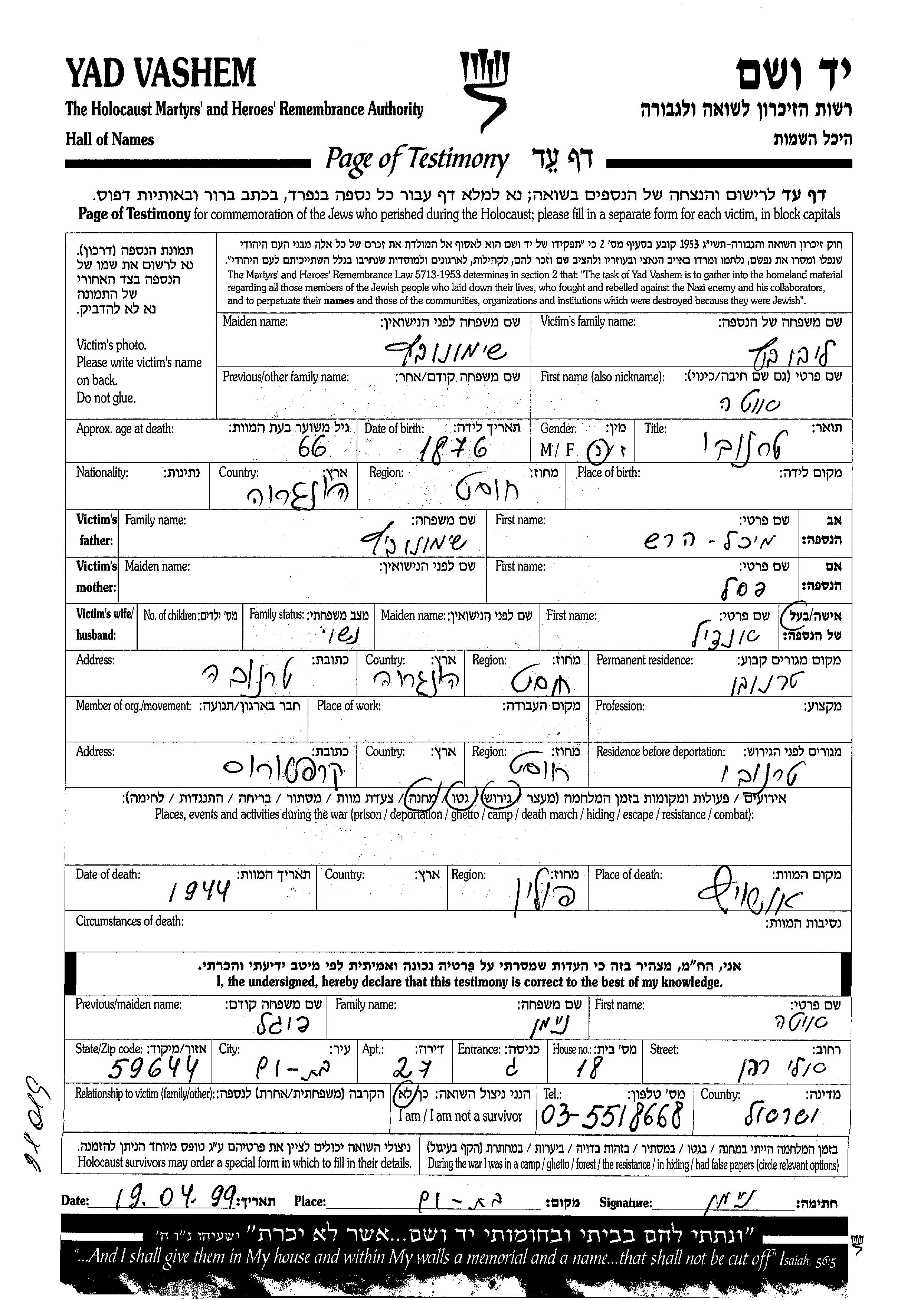 Yad Vashem - Pages of Testimony Names Memorial Collection