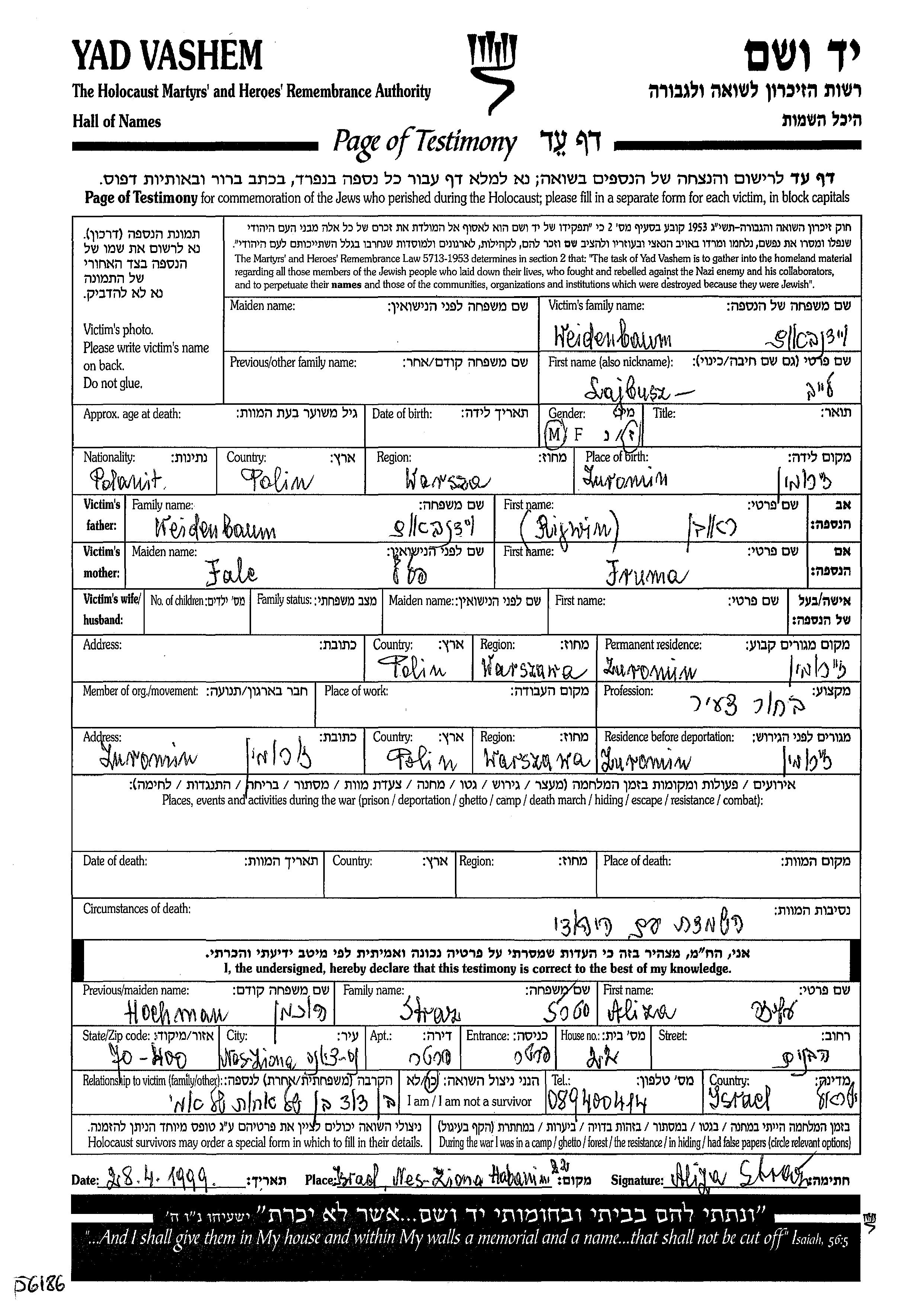 Lieu de résidence pendant la guerre/Shoah