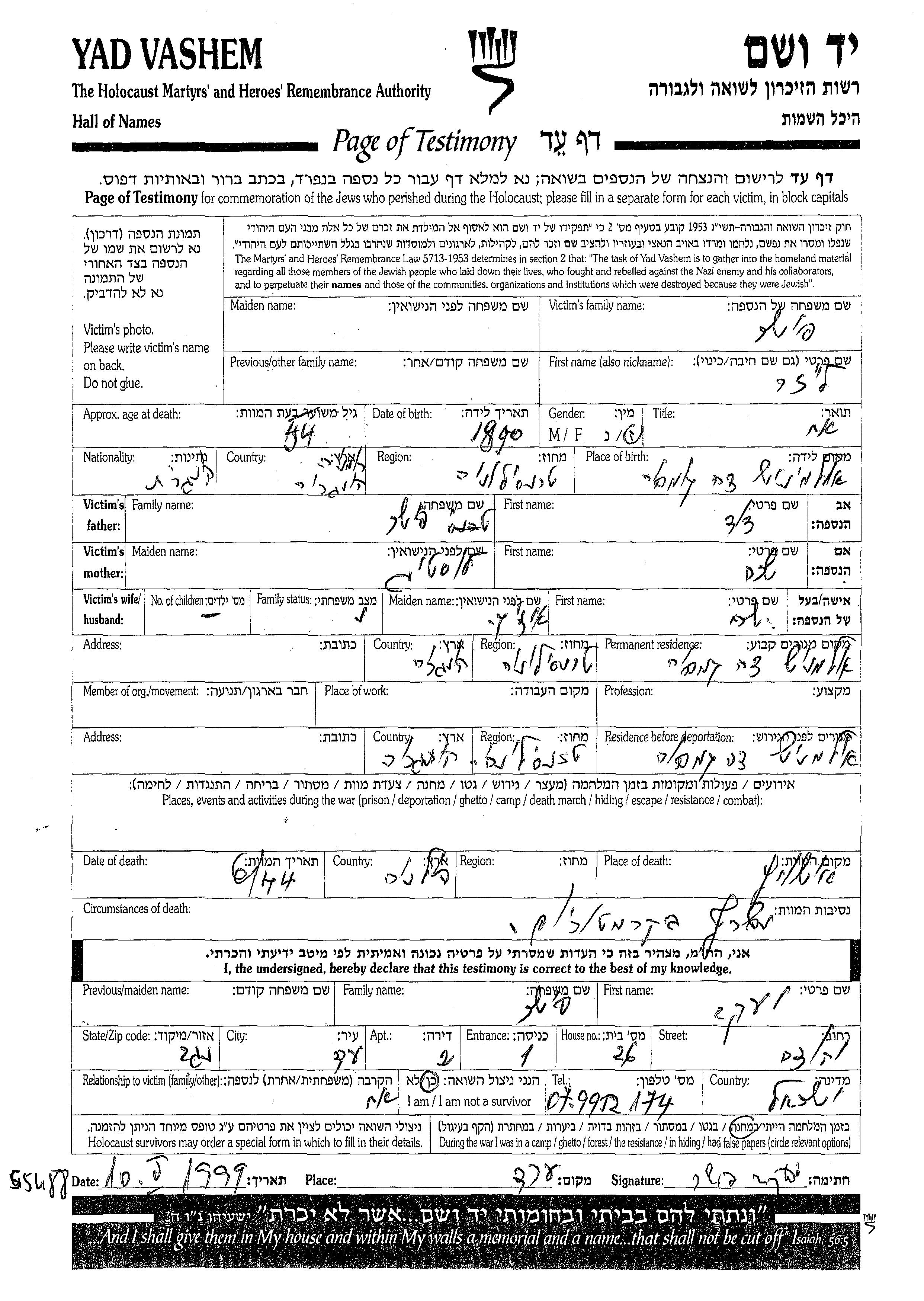 Yad Vashem - Pages of Testimony Names Memorial Collection