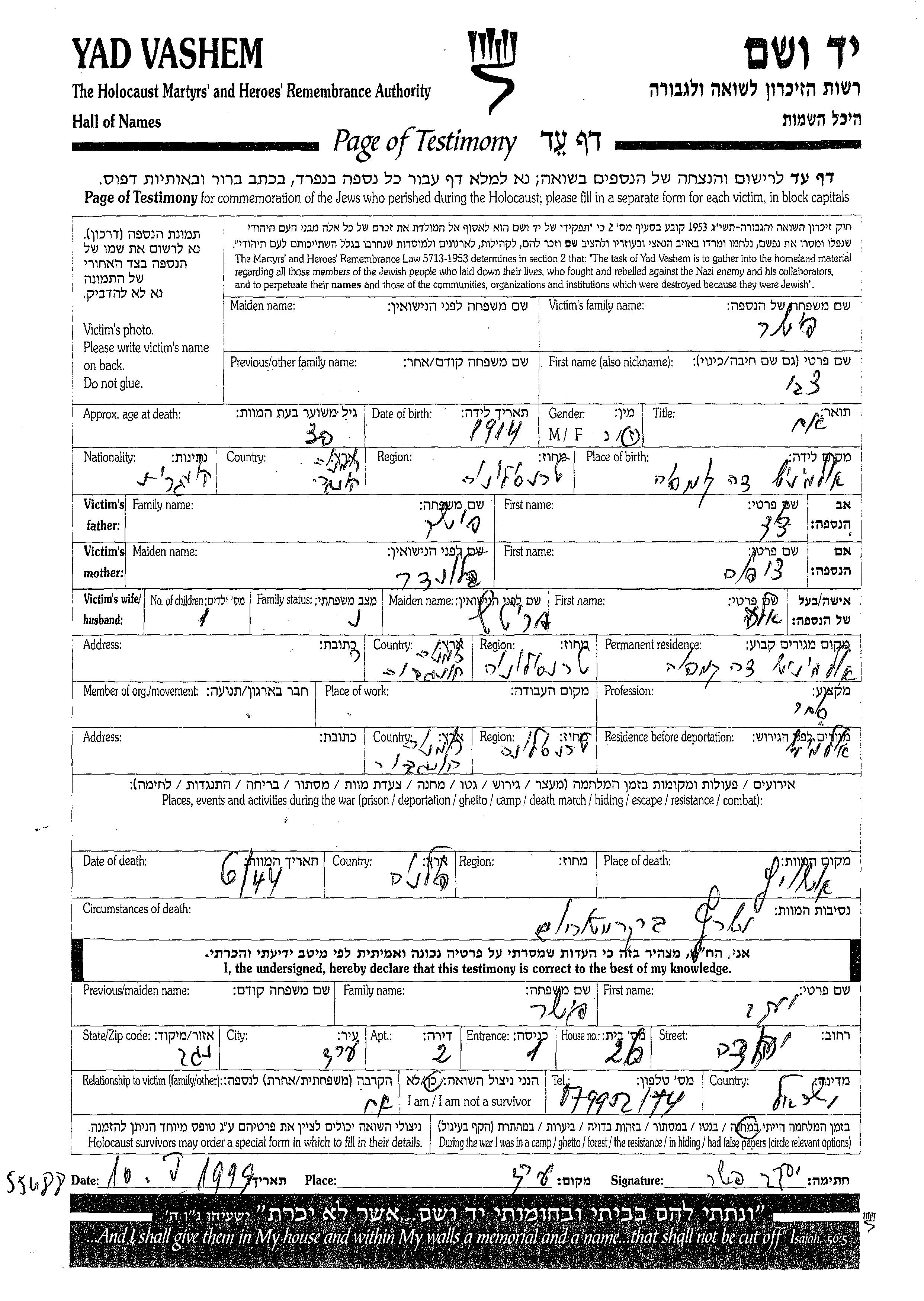 Yad Vashem - Pages of Testimony Names Memorial Collection