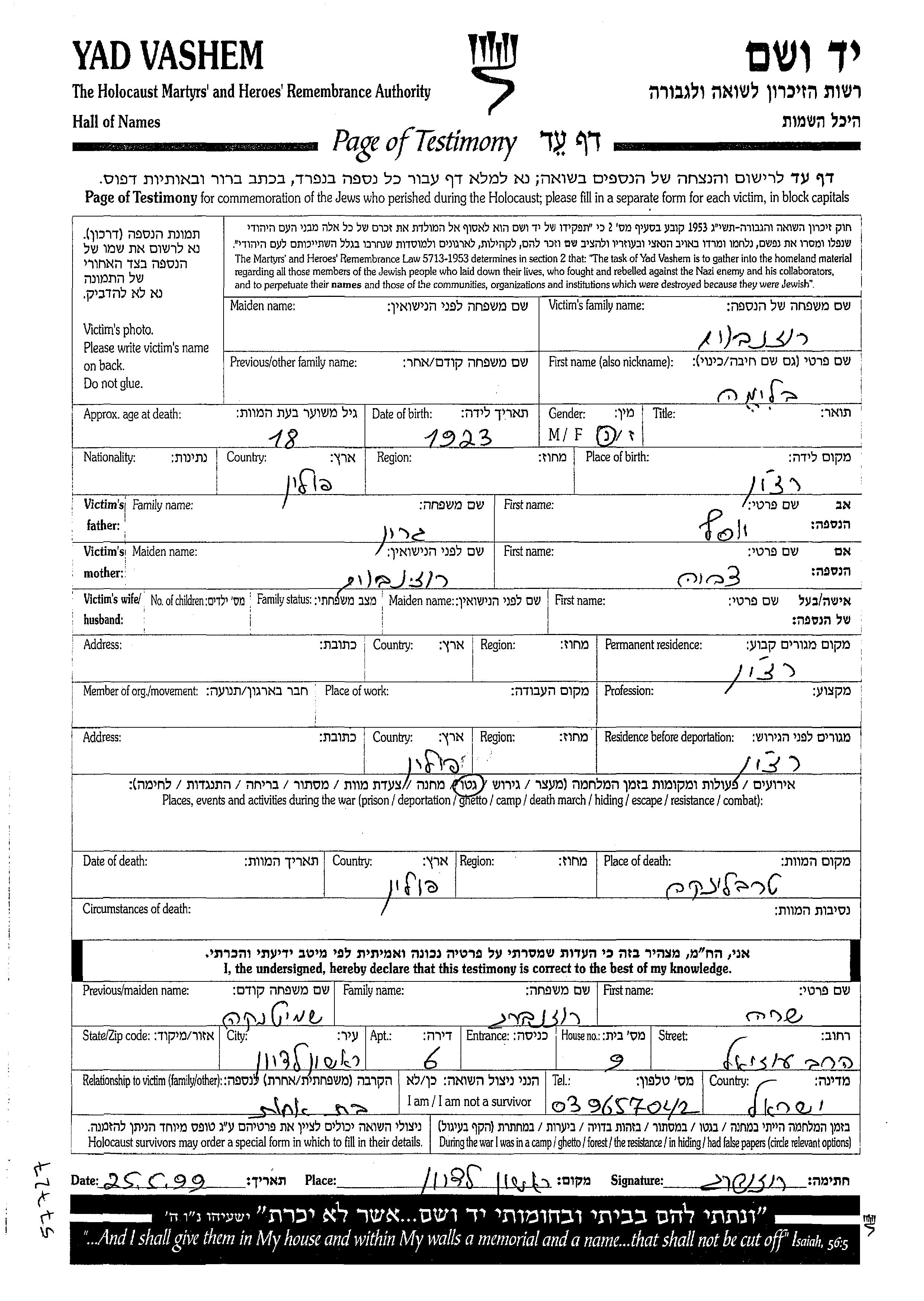 Yad Vashem - Pages of Testimony Names Memorial Collection