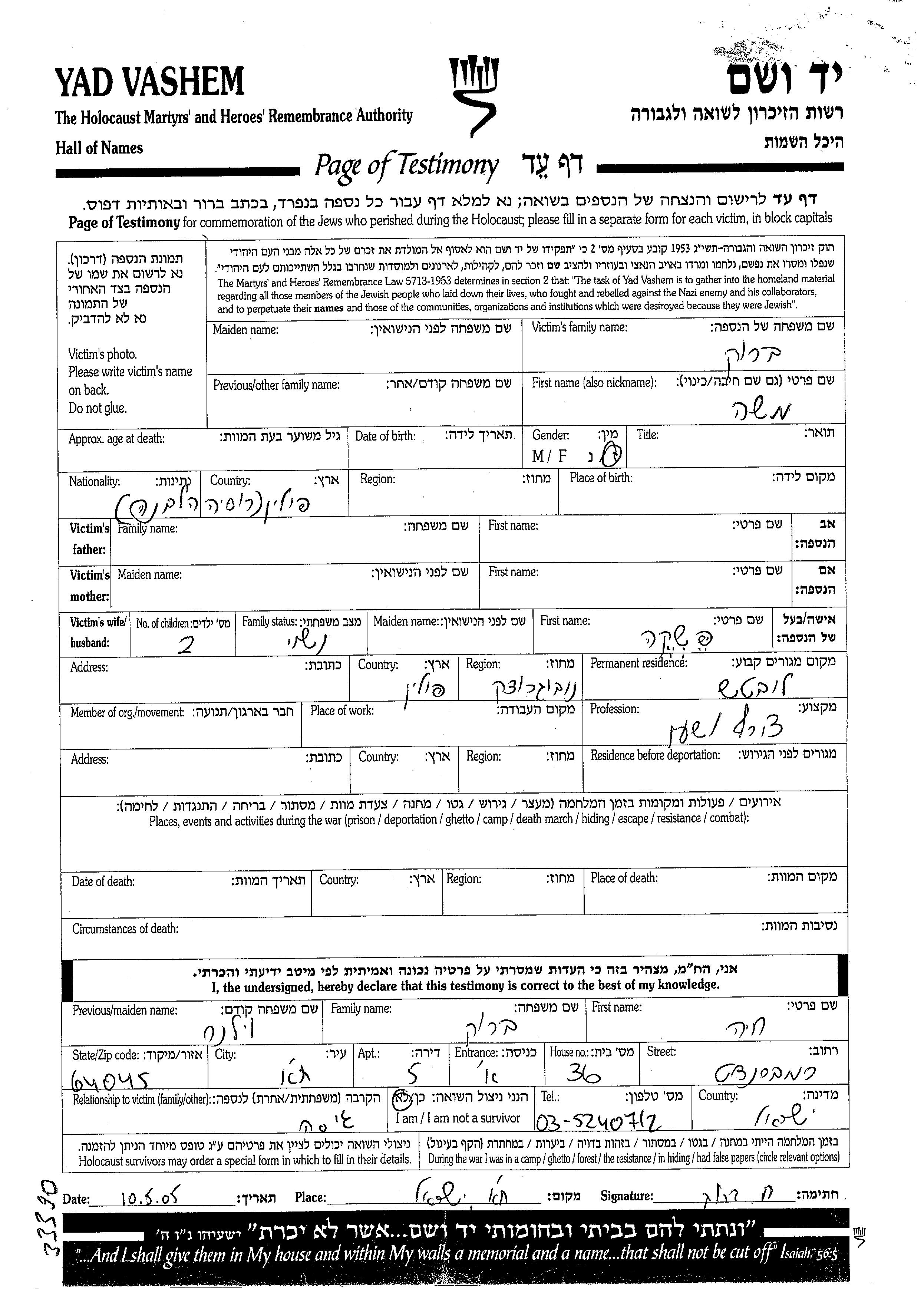 Yad Vashem - Pages of Testimony Names Memorial Collection