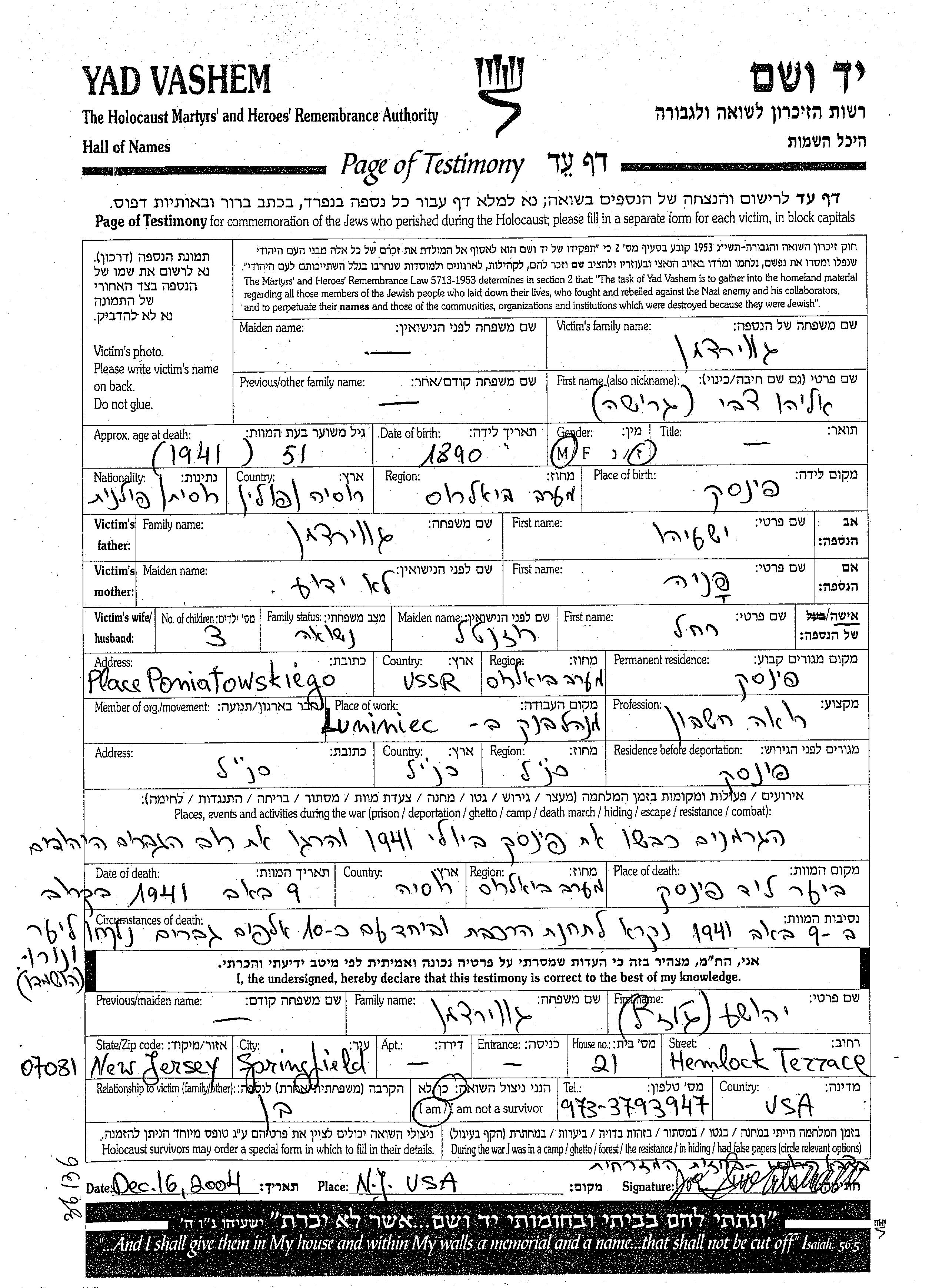 Yad Vashem - Pages of Testimony Names Memorial Collection