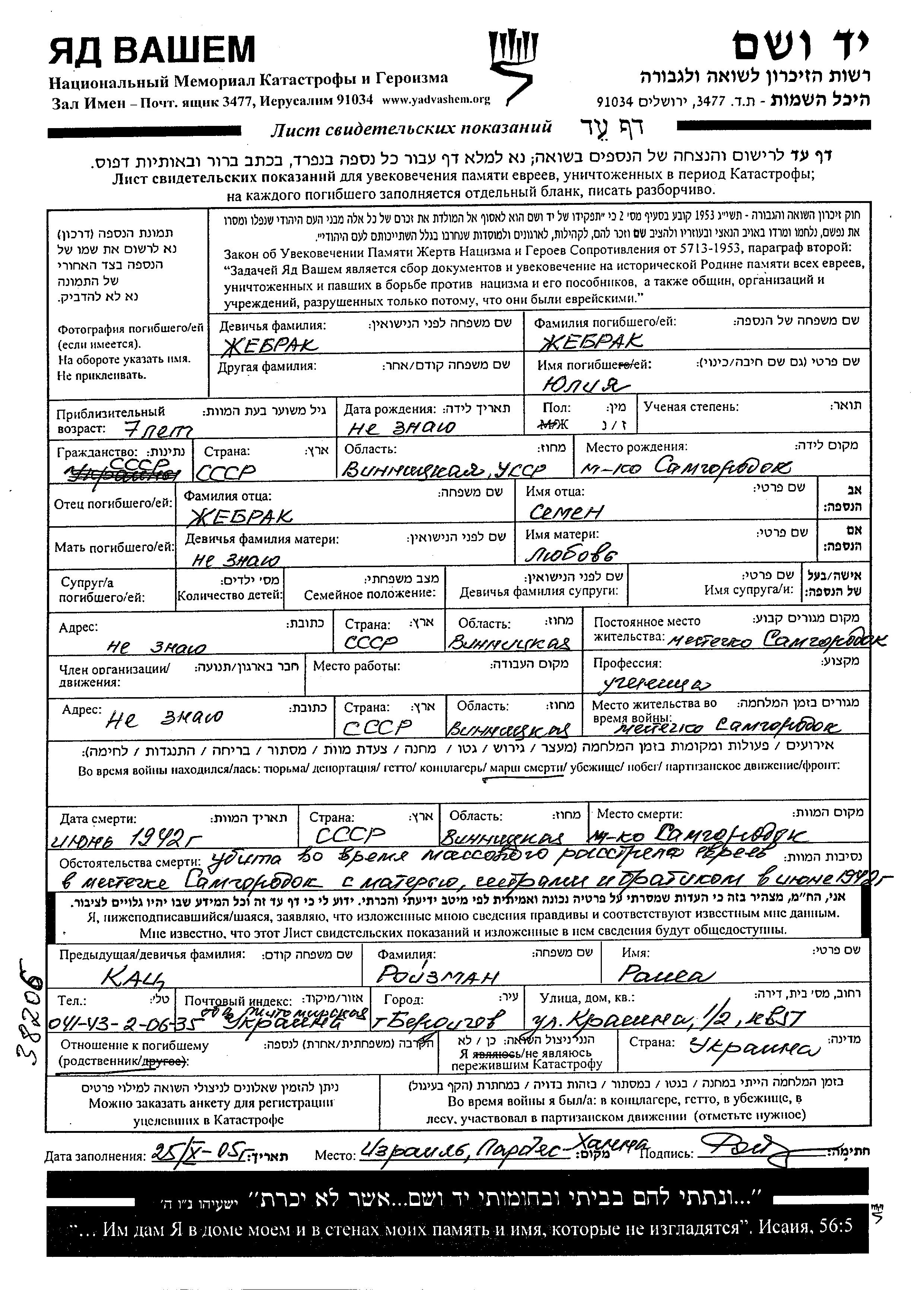 Yad Vashem - Pages of Testimony Names Memorial Collection