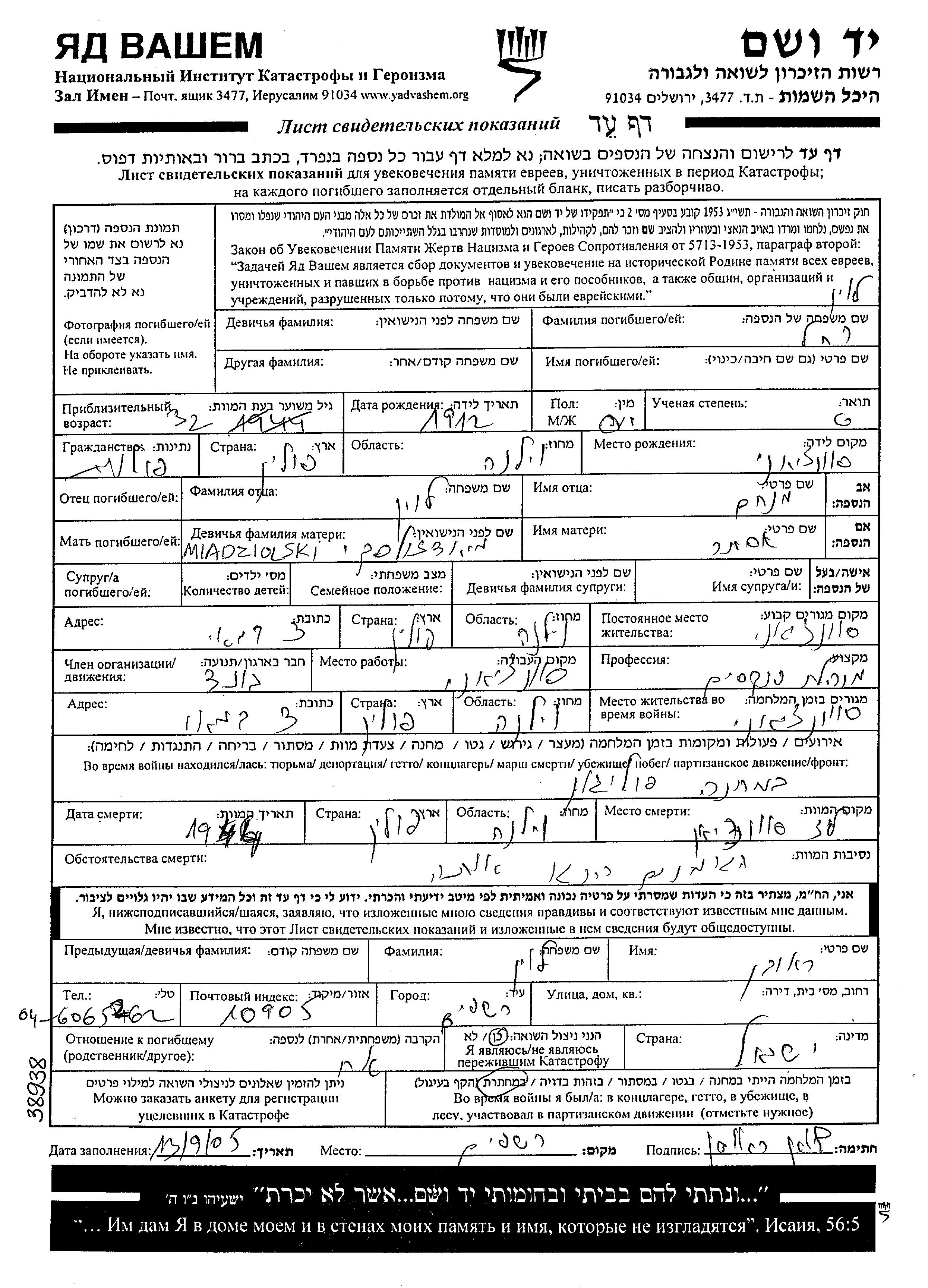 Yad Vashem - Pages of Testimony Names Memorial Collection
