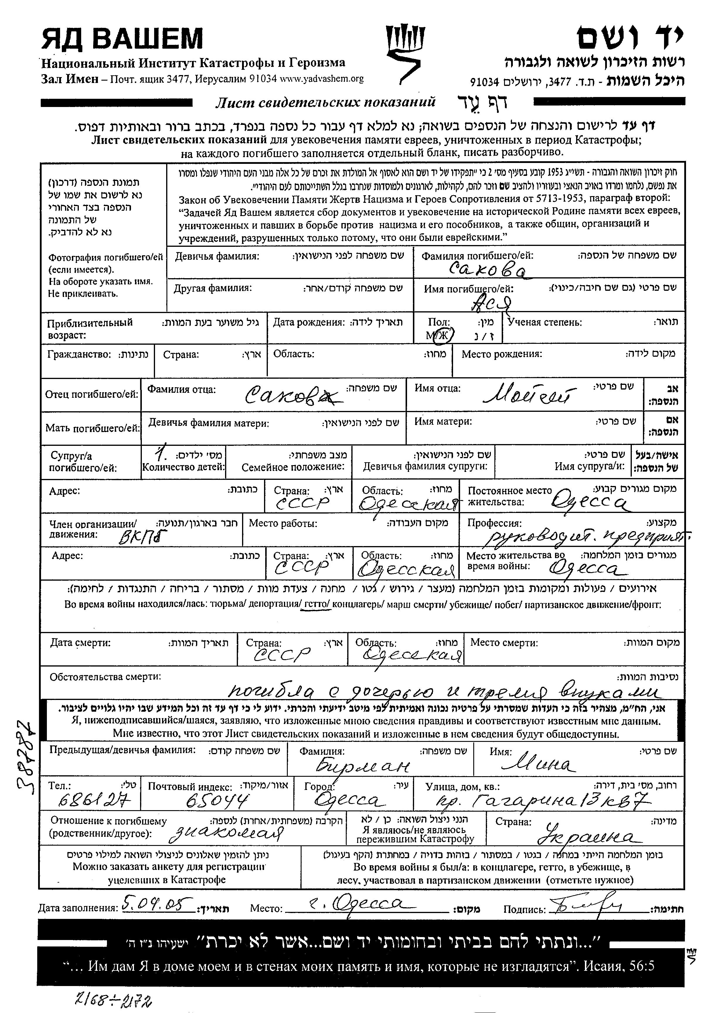 Yad Vashem - Pages of Testimony Names Memorial Collection
