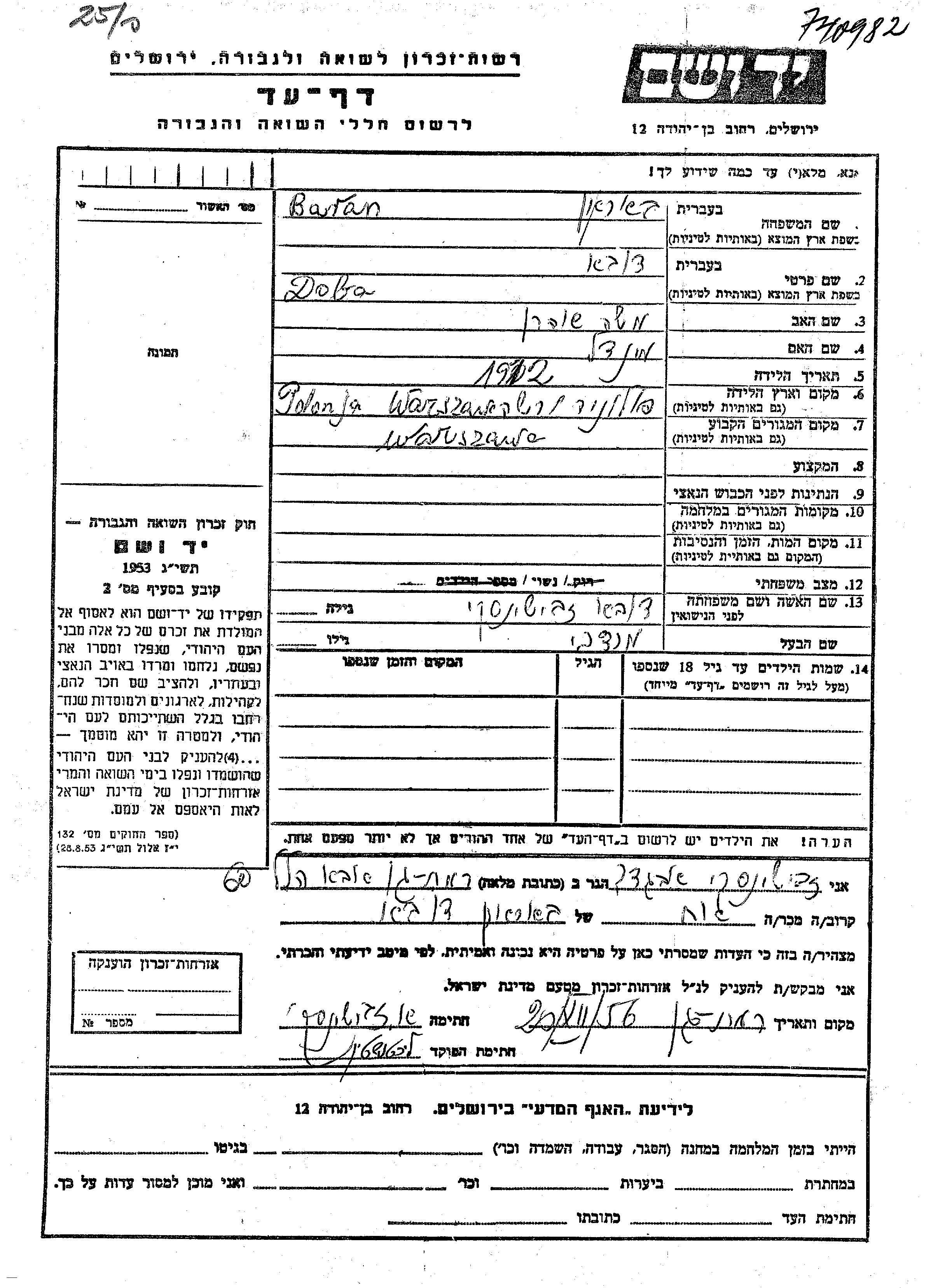Yad Vashem - Pages of Testimony Names Memorial Collection