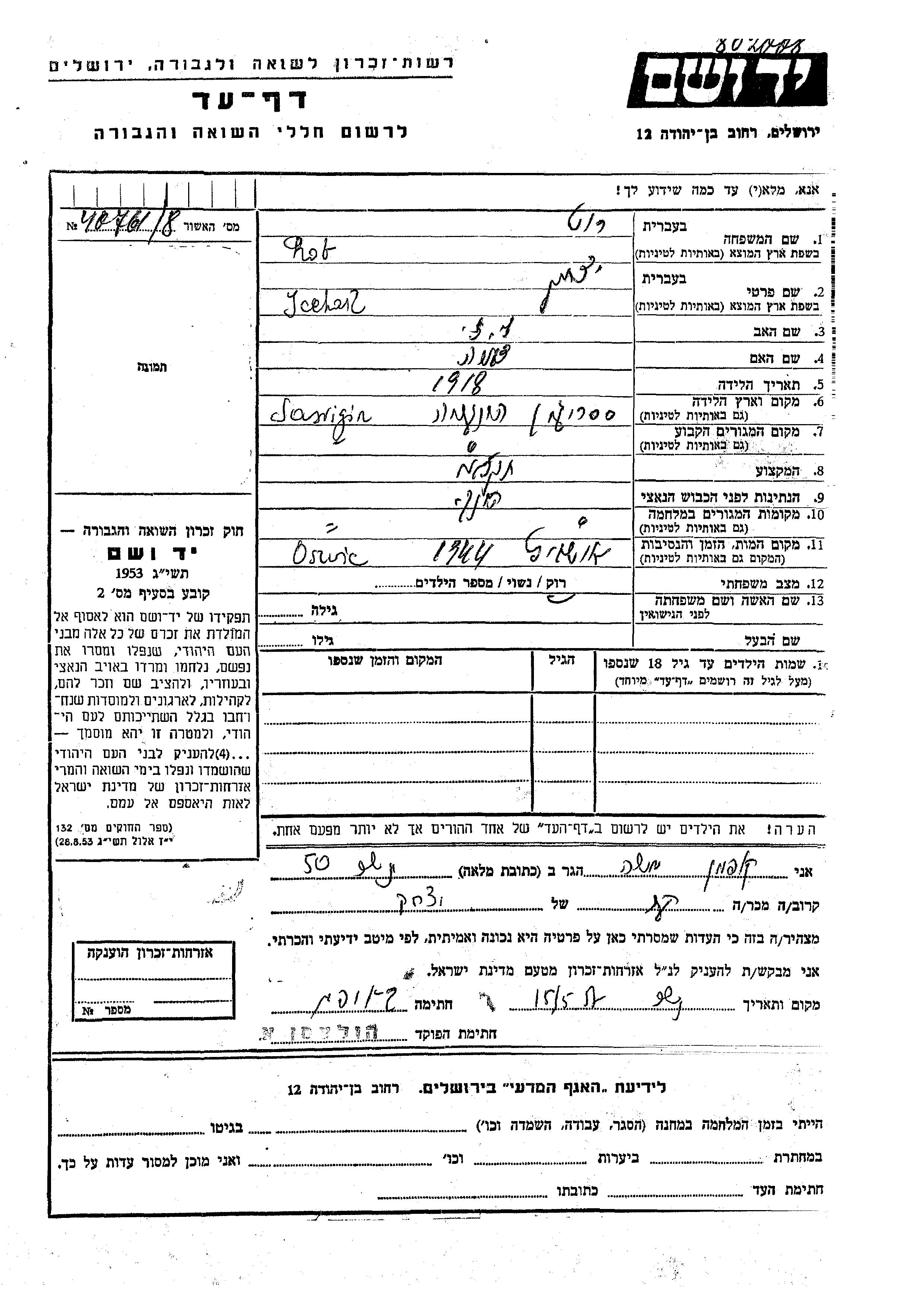 Yad Vashem - Pages of Testimony Names Memorial Collection