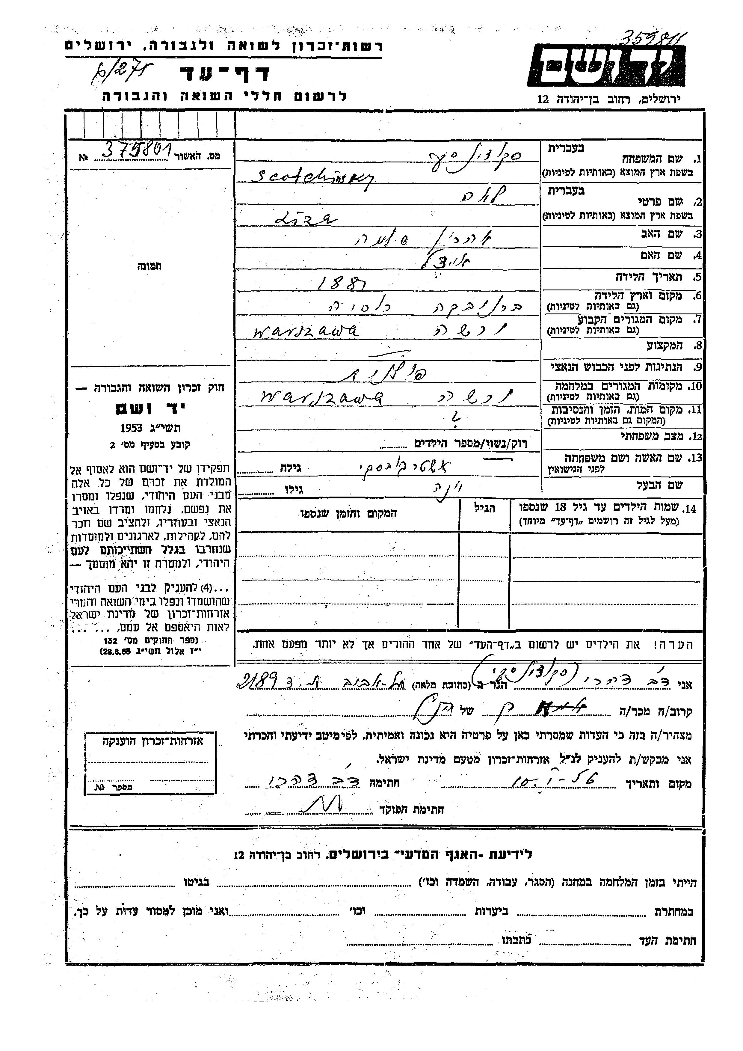 Yad Vashem - Pages of Testimony Names Memorial Collection