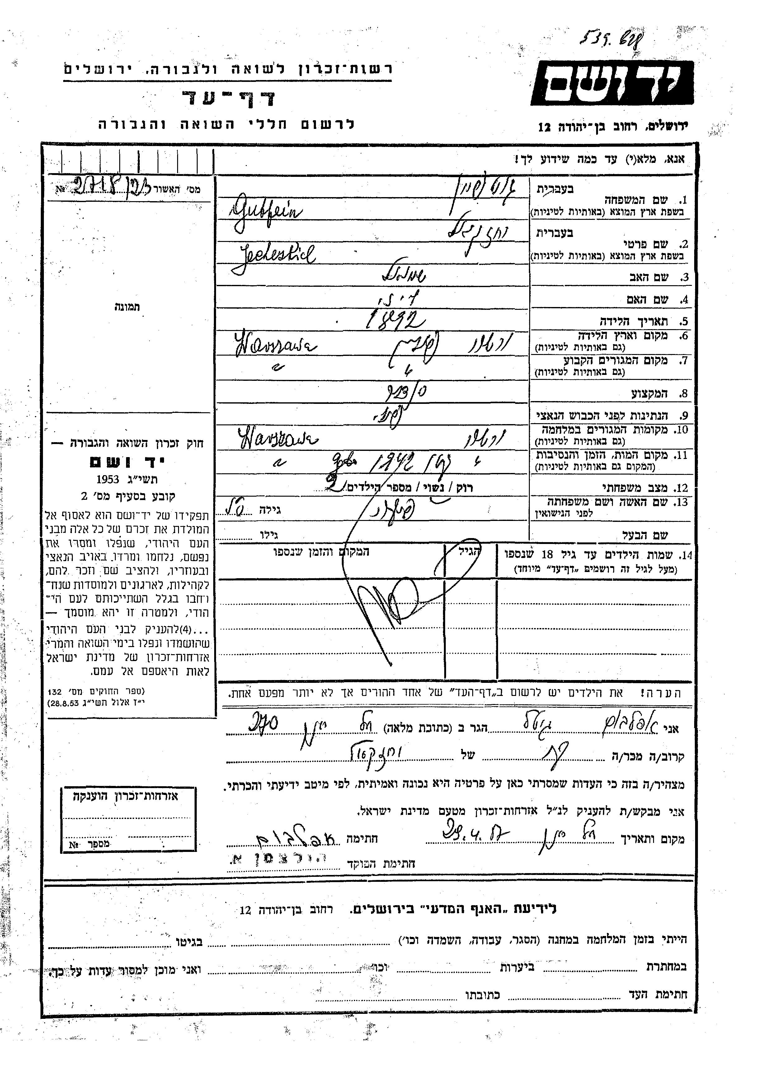 Yad Vashem - Pages of Testimony Names Memorial Collection