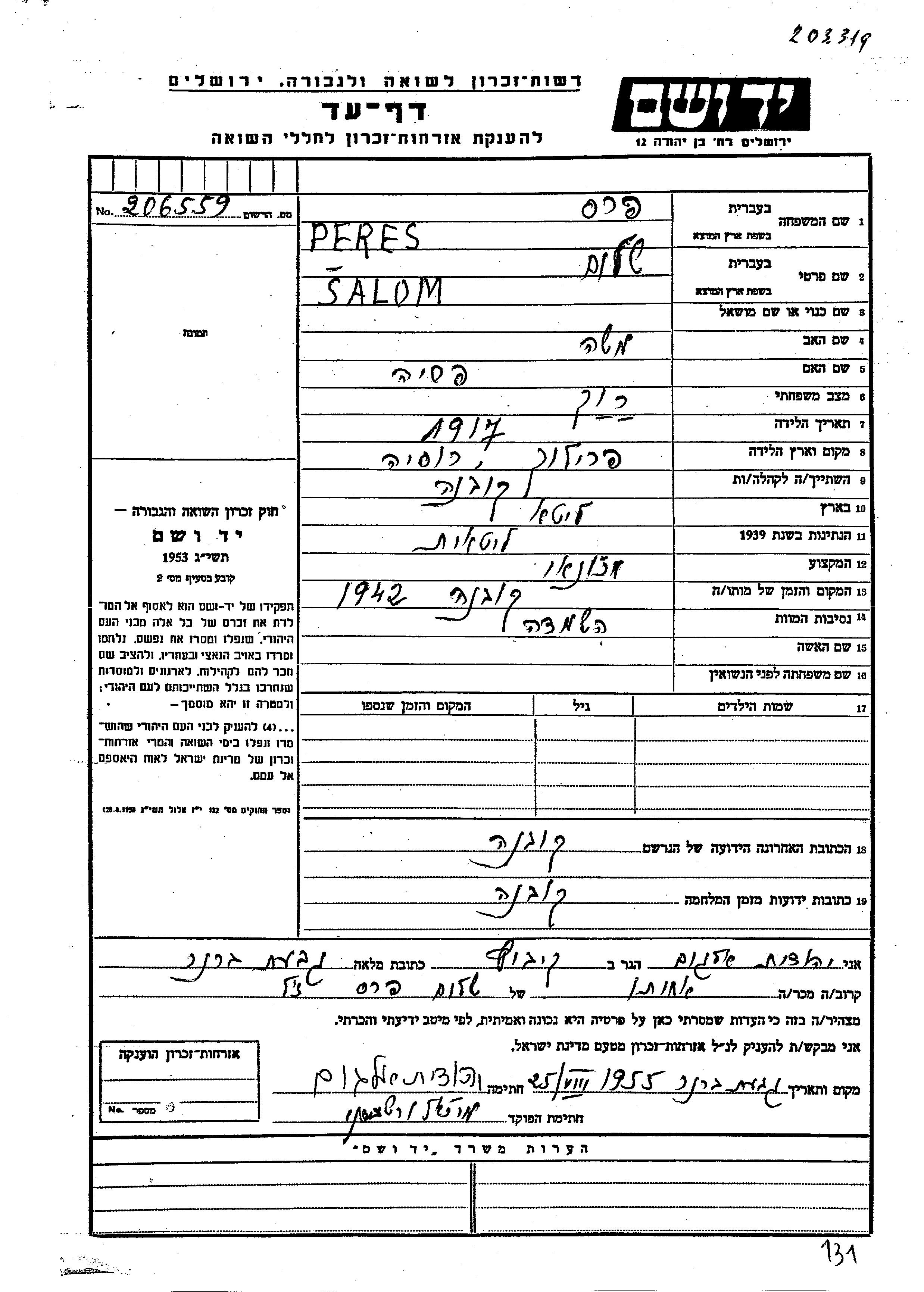 Yad Vashem - Pages of Testimony Names Memorial Collection