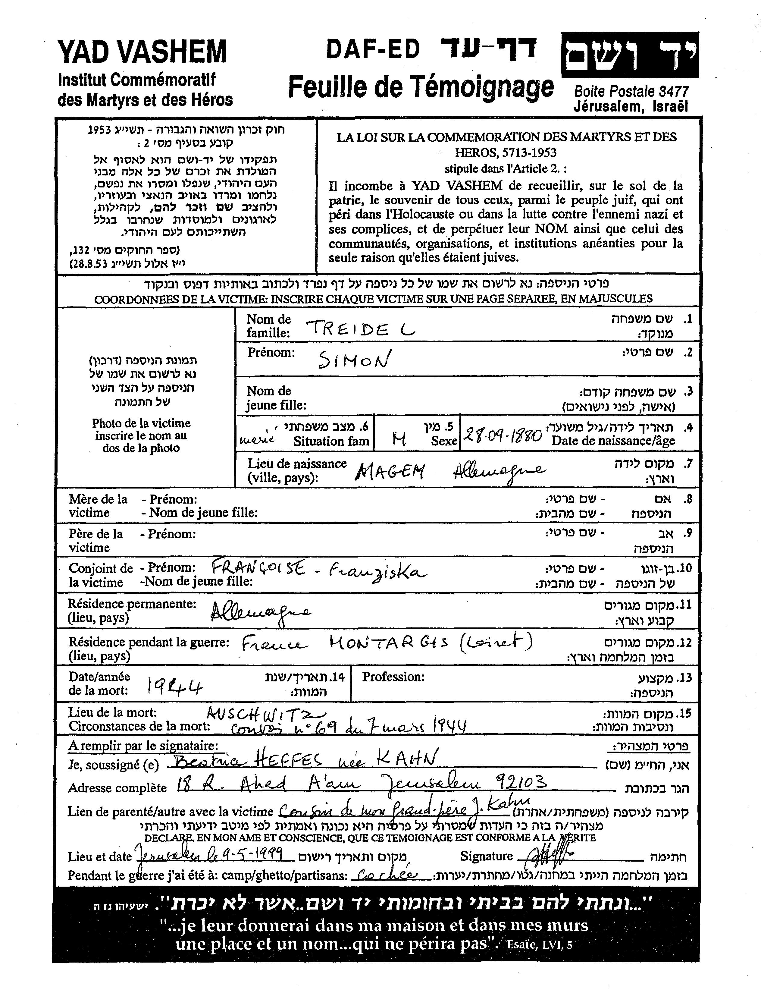 Yad Vashem - Pages of Testimony Names Memorial Collection