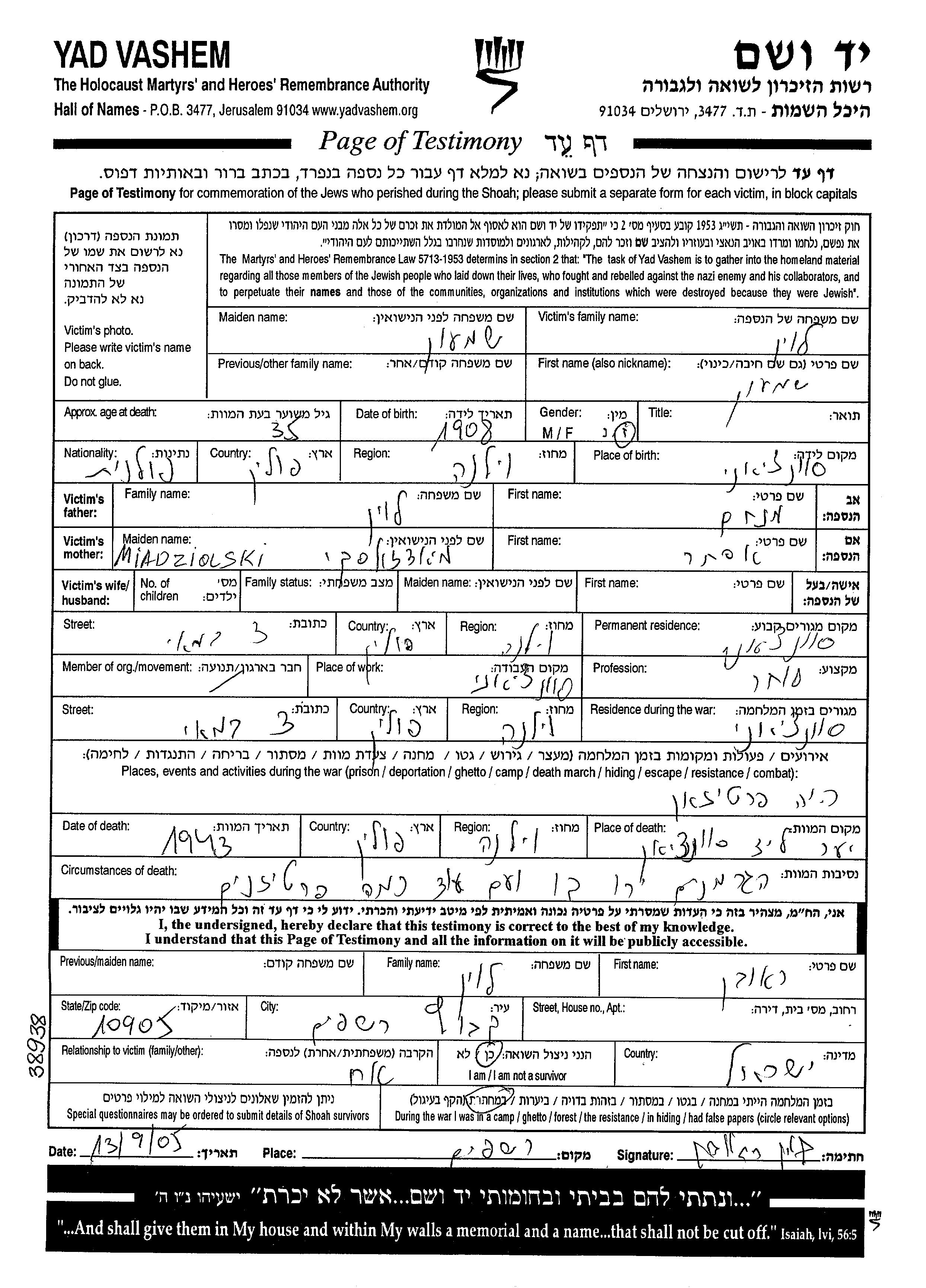 Yad Vashem - Pages of Testimony Names Memorial Collection