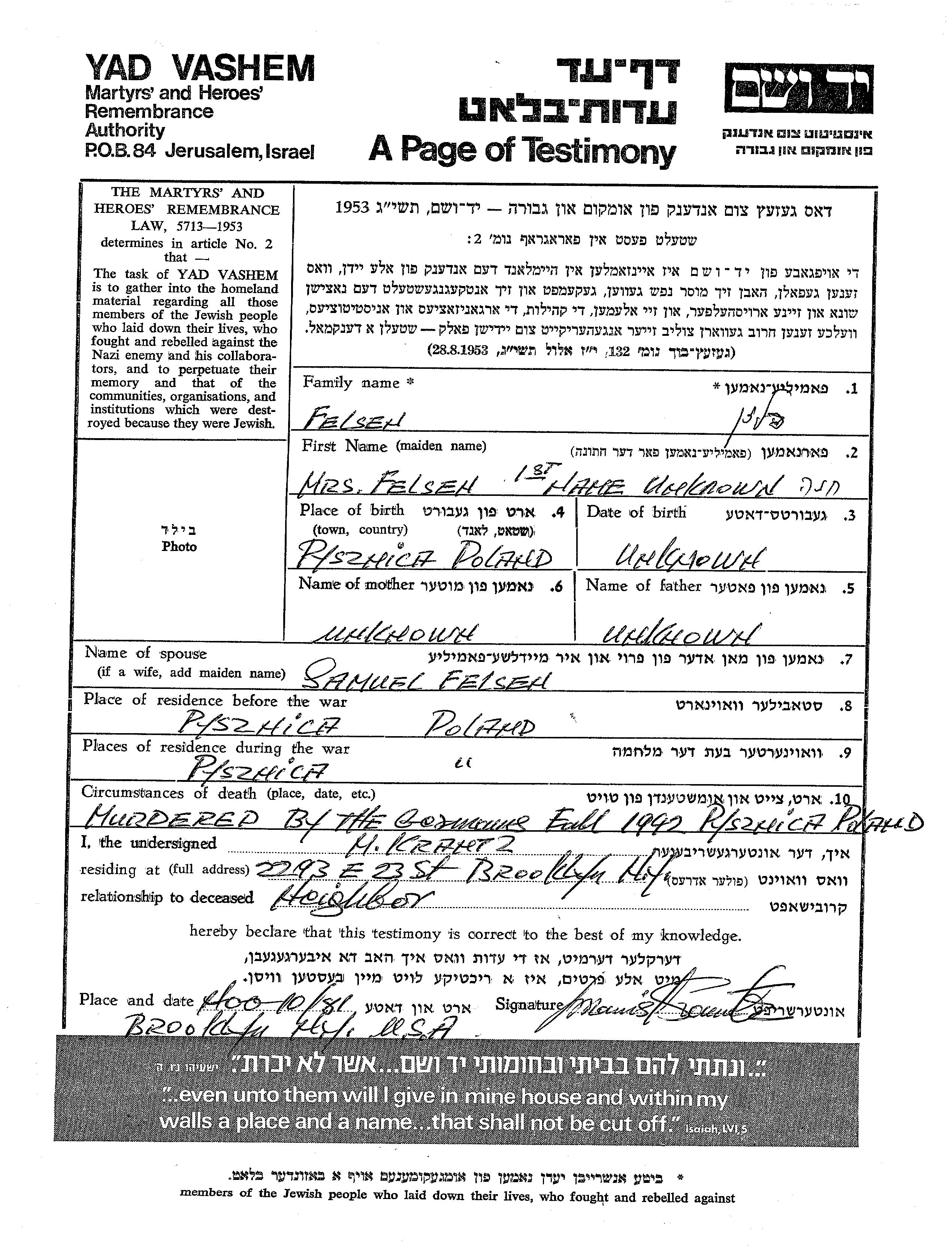 Yad Vashem - Pages of Testimony Names Memorial Collection