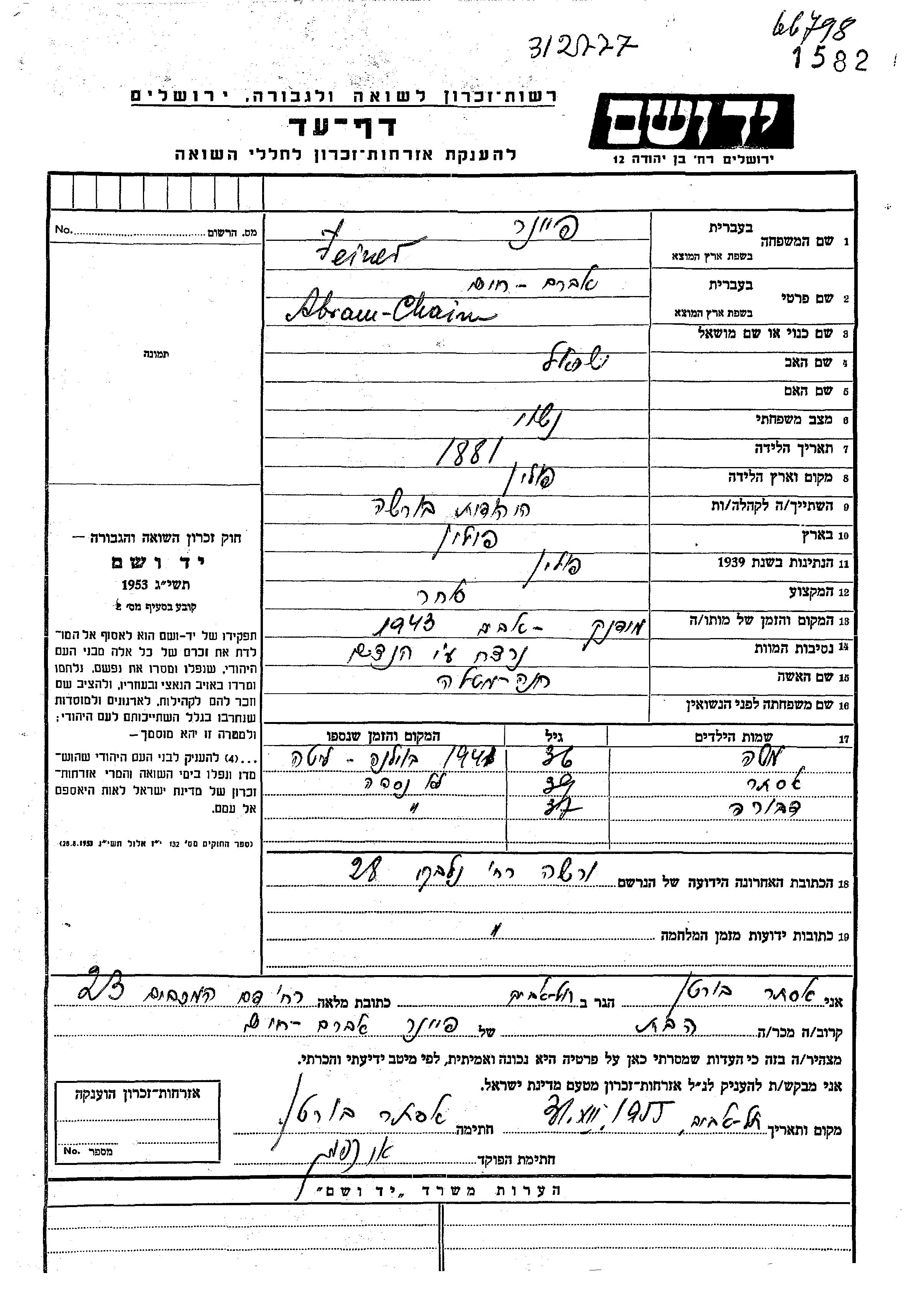 Yad Vashem - Pages of Testimony Names Memorial Collection