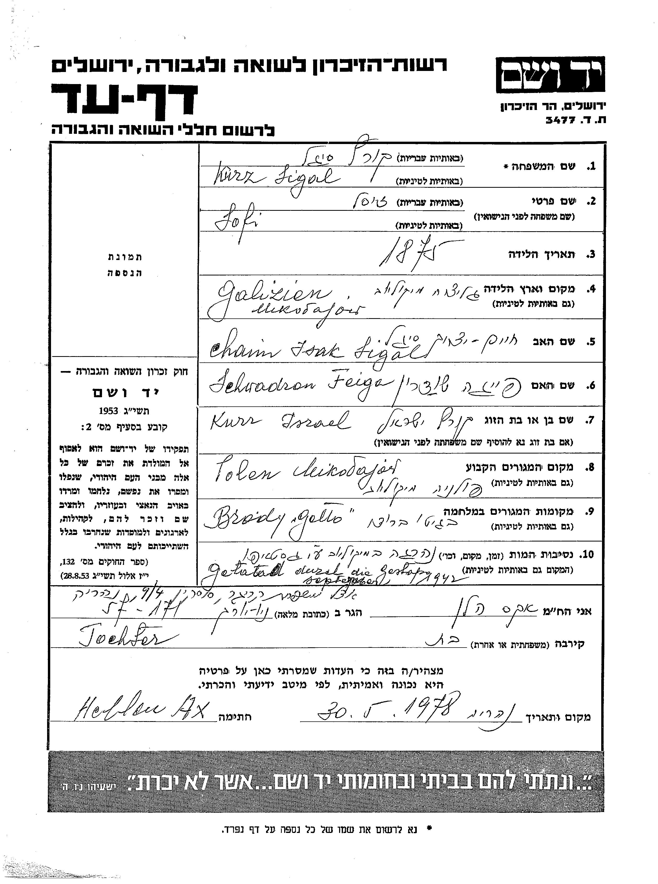 Yad Vashem - Pages of Testimony Names Memorial Collection