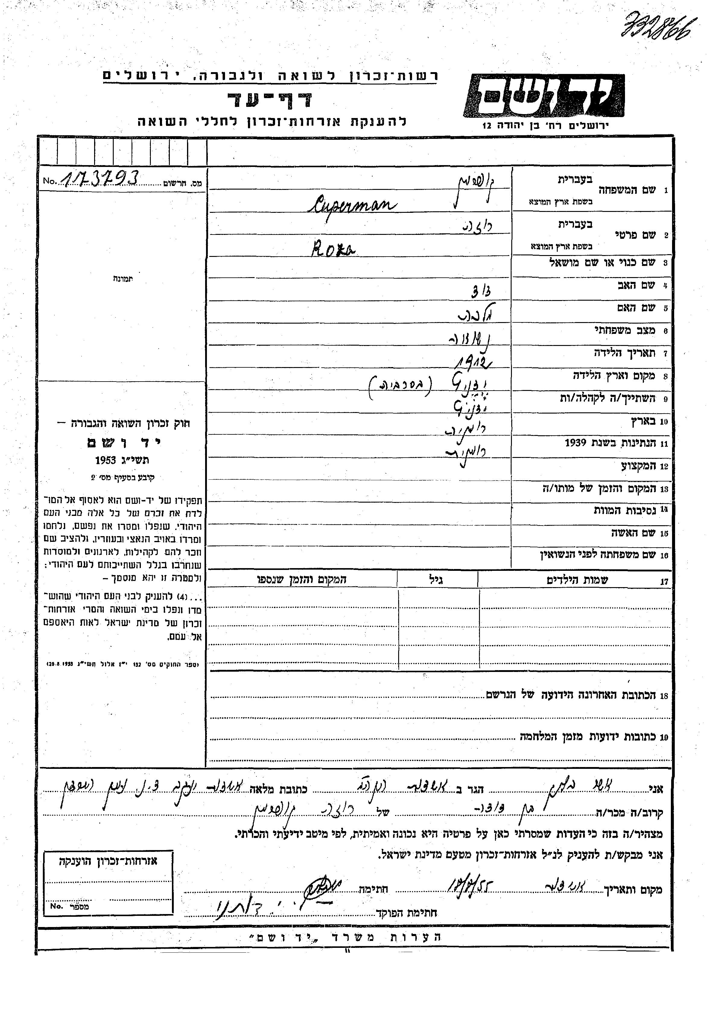 Yad Vashem - Pages of Testimony Names Memorial Collection