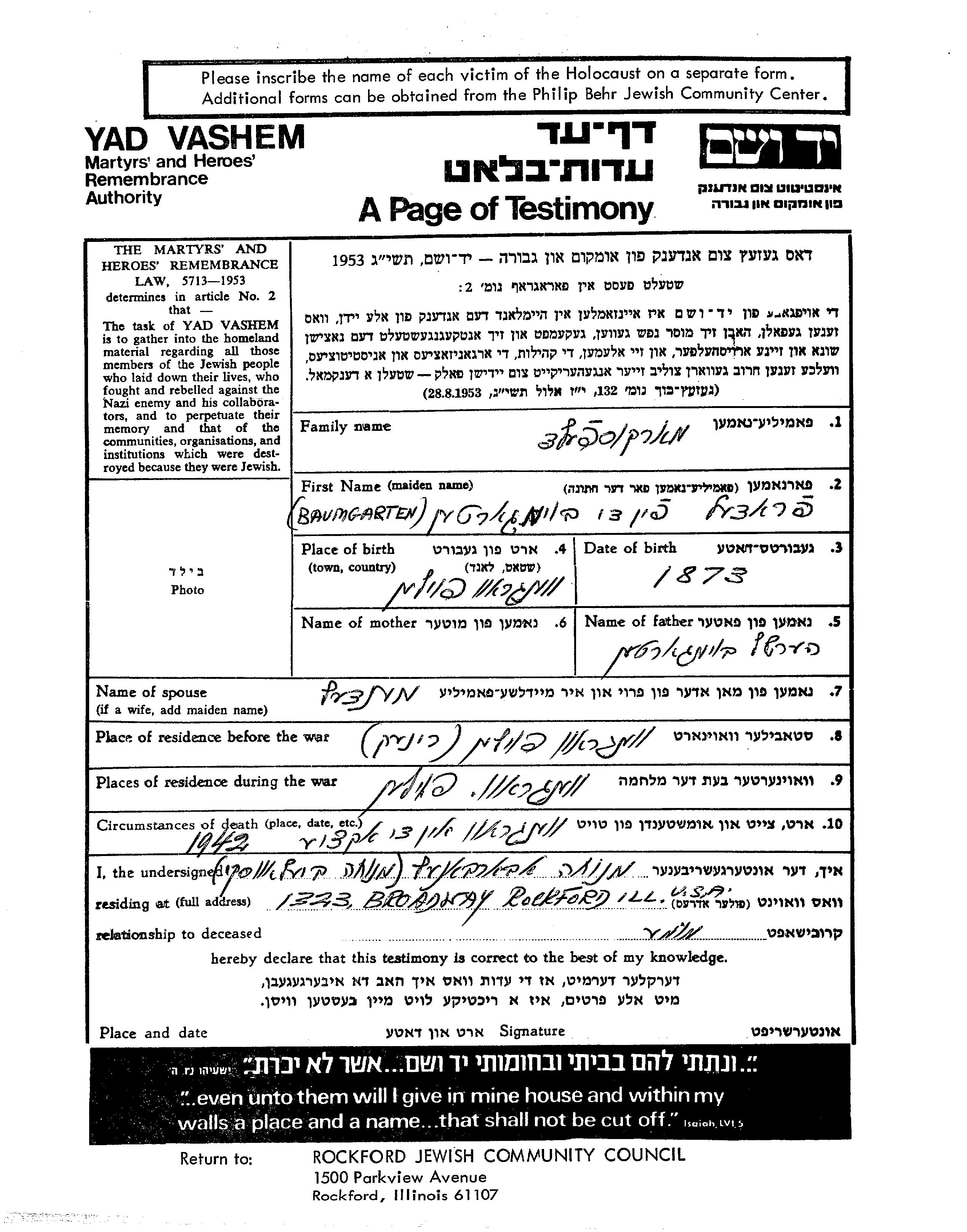 Yad Vashem - Pages of Testimony Names Memorial Collection
