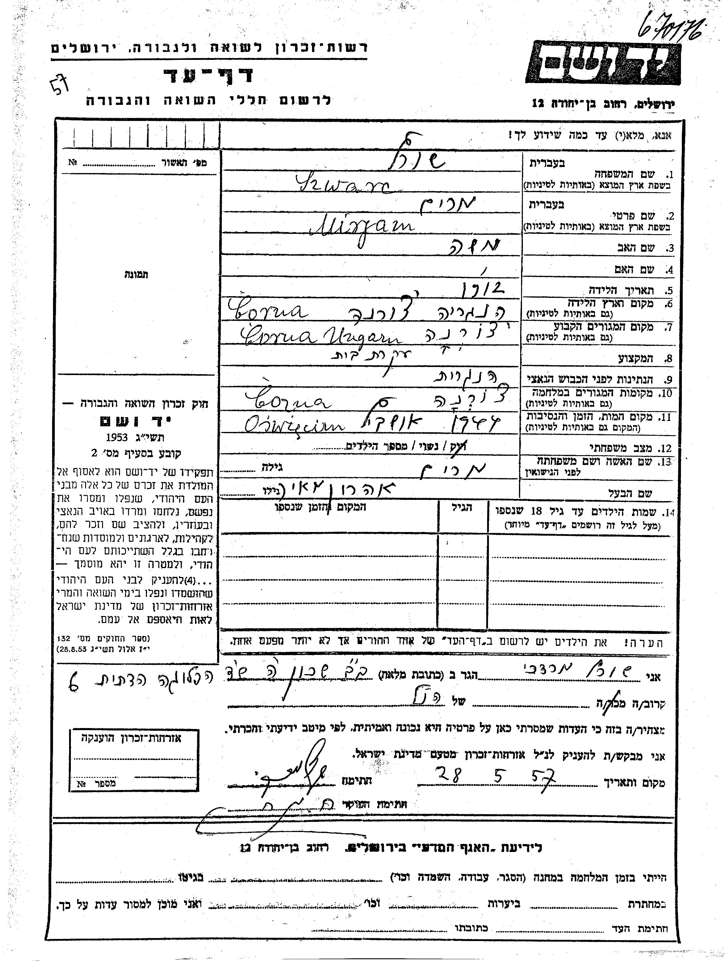 Yad Vashem - Pages of Testimony Names Memorial Collection