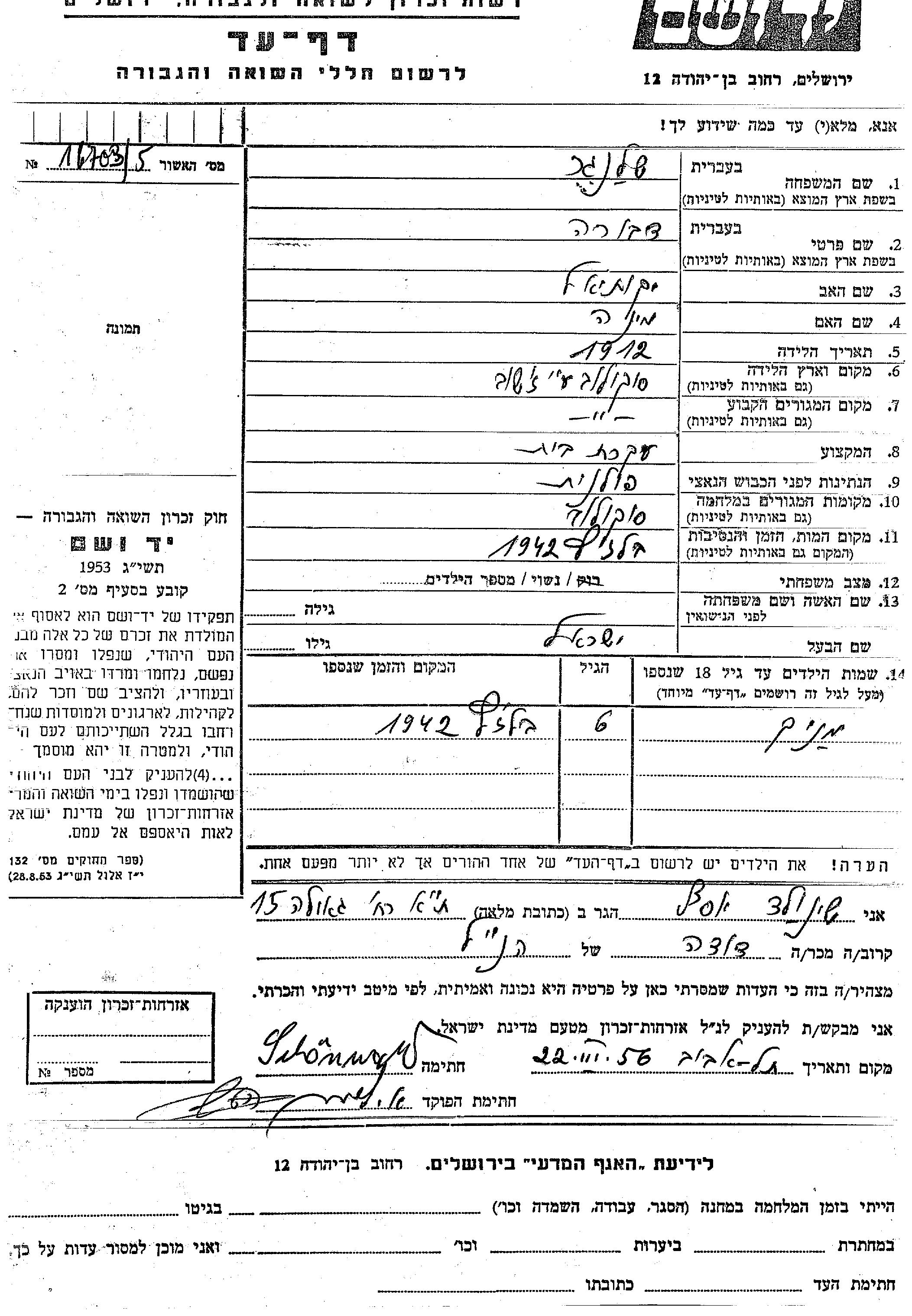 Yad Vashem - Pages of Testimony Names Memorial Collection