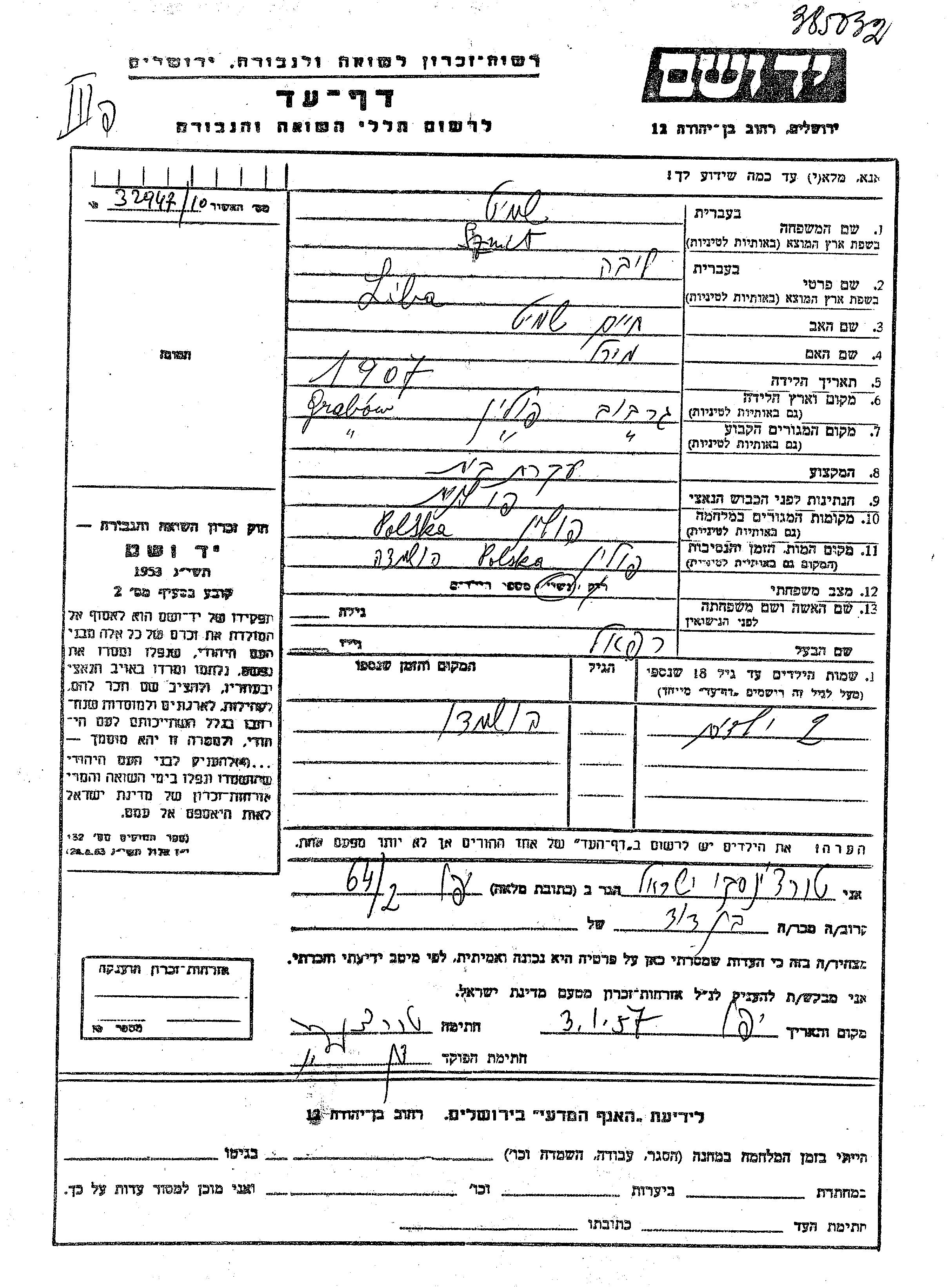 Yad Vashem - Pages of Testimony Names Memorial Collection