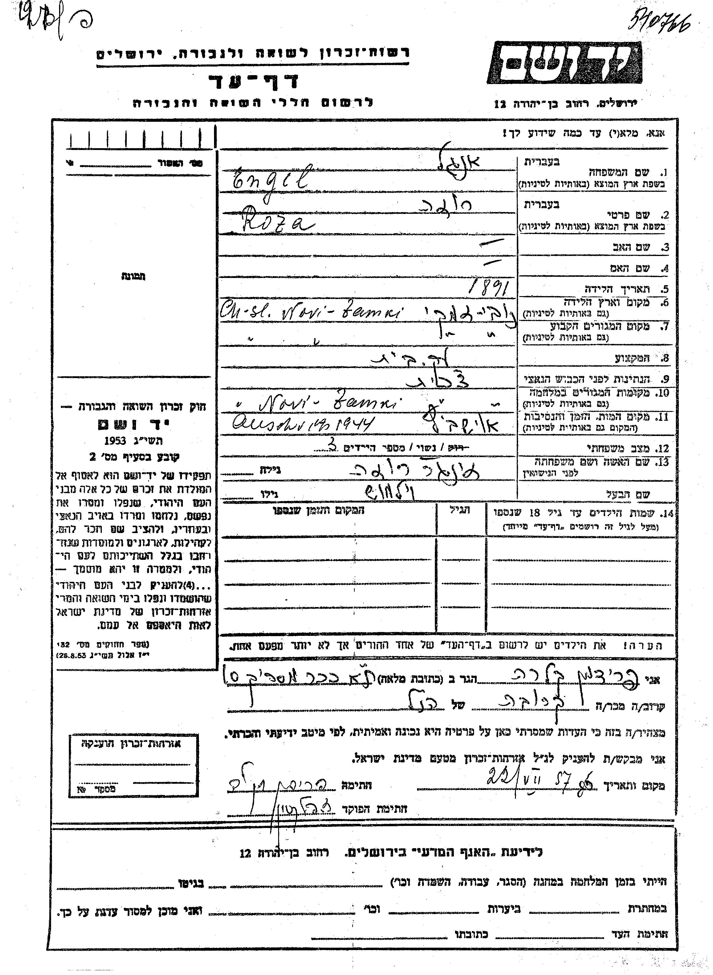 Yad Vashem - Pages of Testimony Names Memorial Collection
