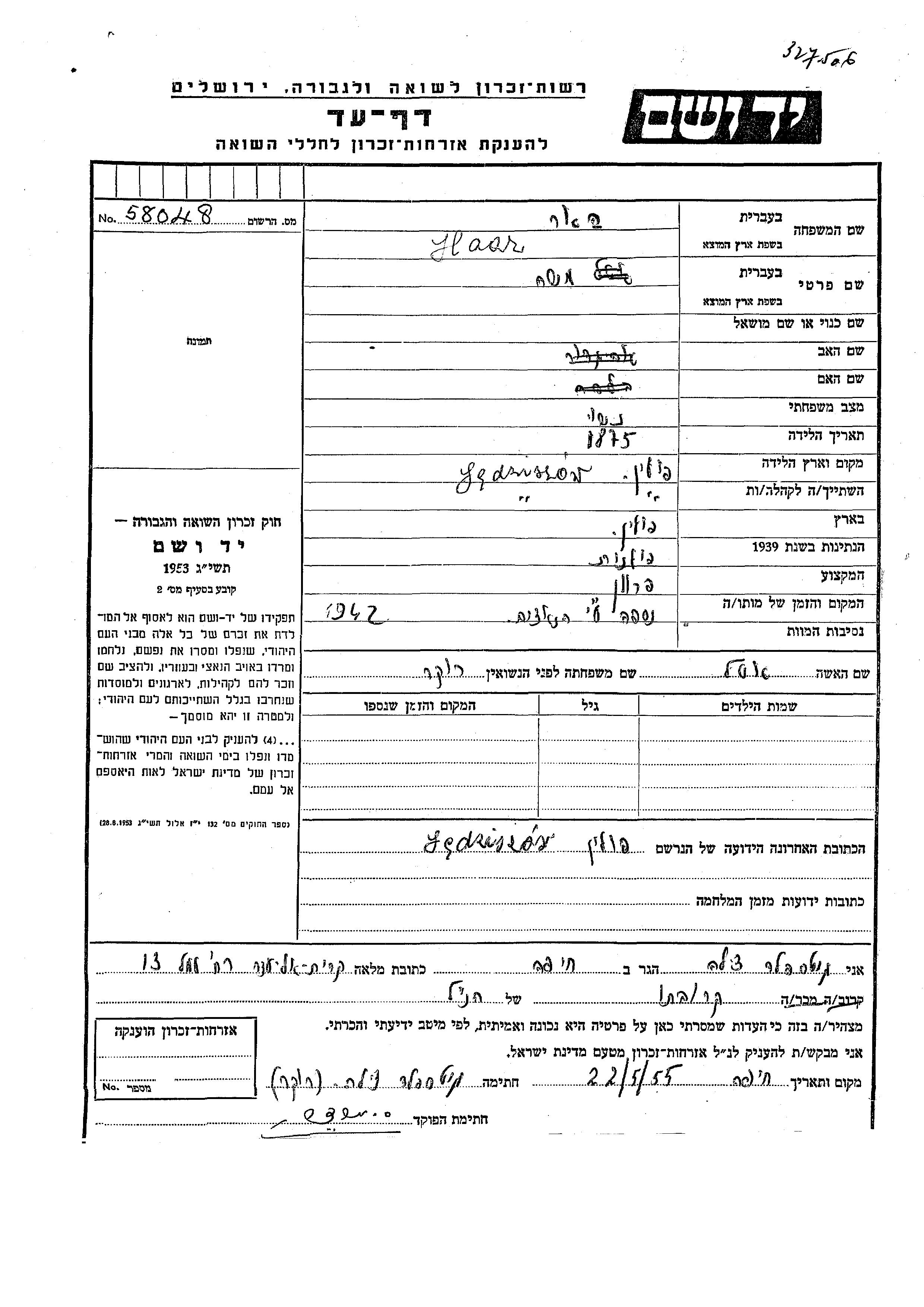 Yad Vashem - Pages of Testimony Names Memorial Collection