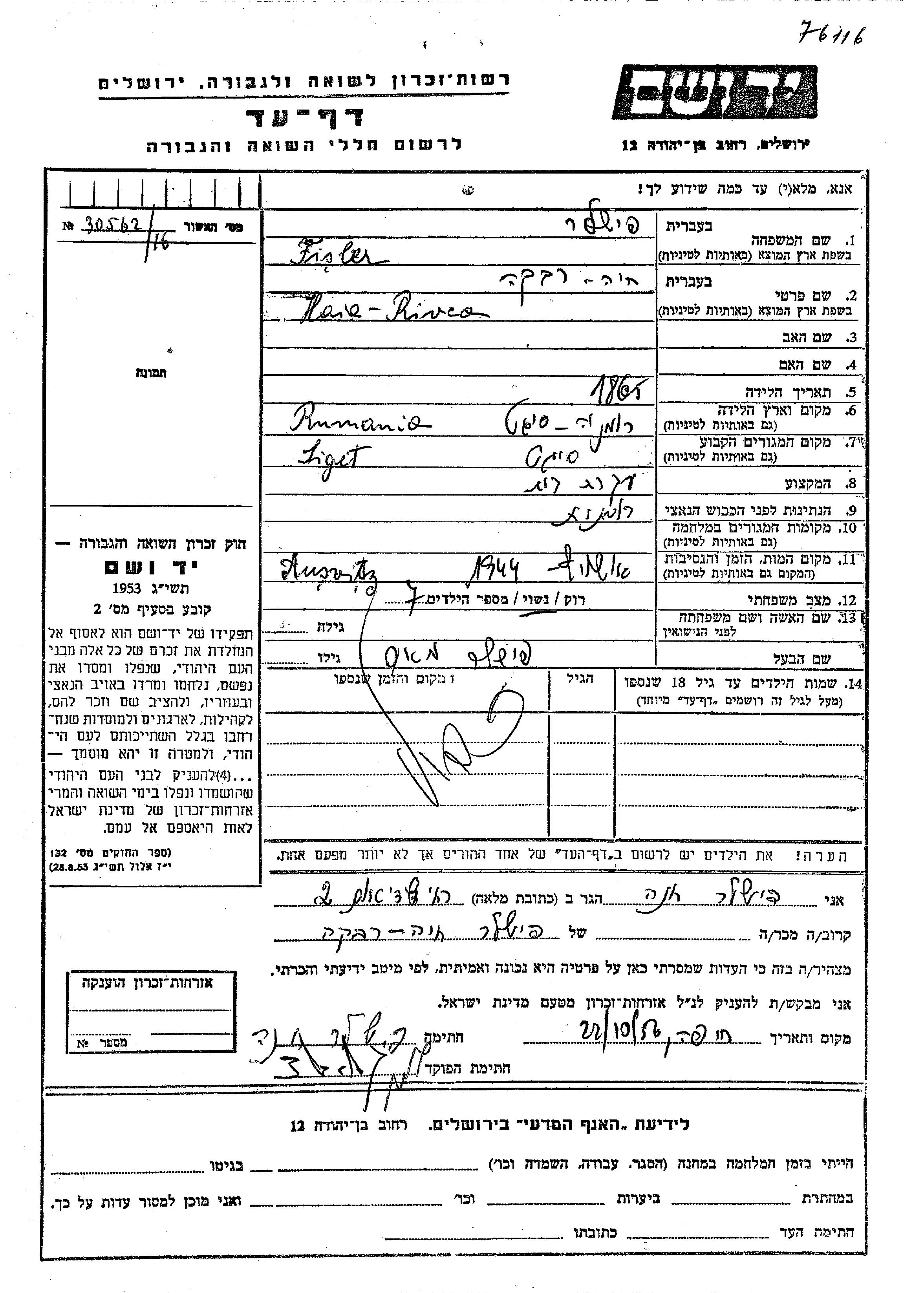 Yad Vashem - Pages of Testimony Names Memorial Collection