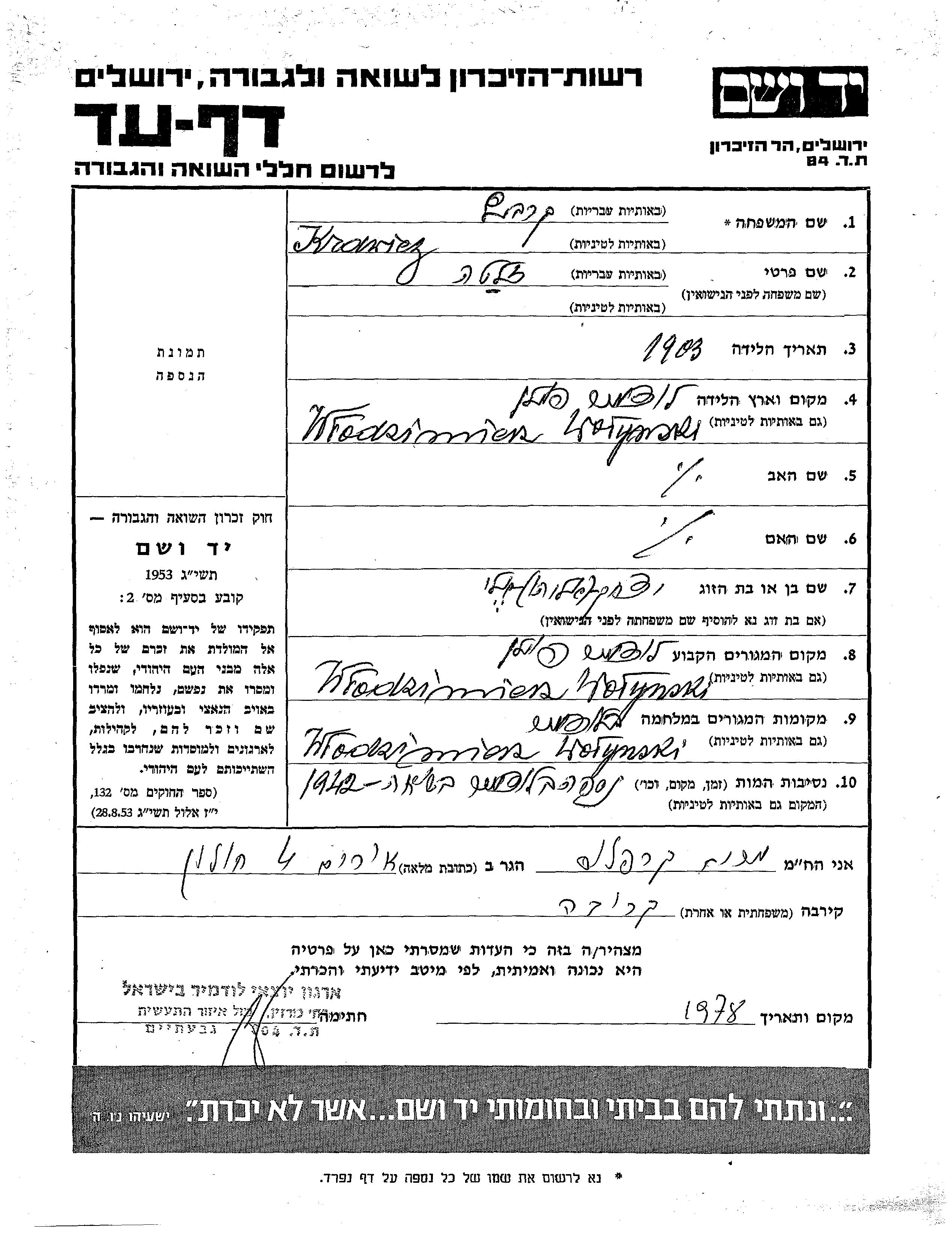 Yad Vashem - Pages of Testimony Names Memorial Collection