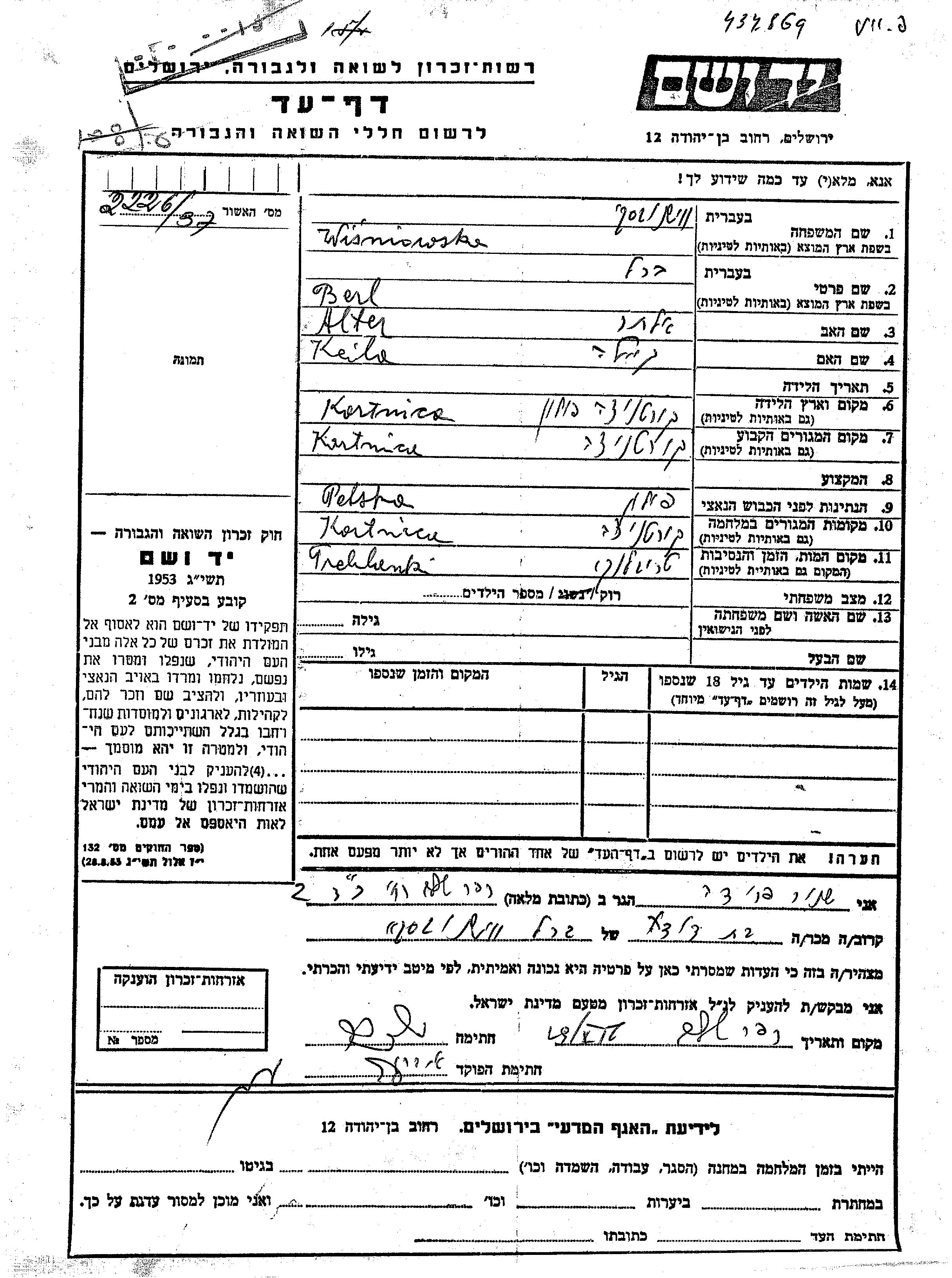 Berl Wisniowska est né à Korytnica, Pologne, fils de Alter et de Keila. Il était Célibataire. Avant la seconde guerre mondiale il vivait à Korytnica, Pologne. Au cours de la guerre, il était à Korytnica, Pologne.