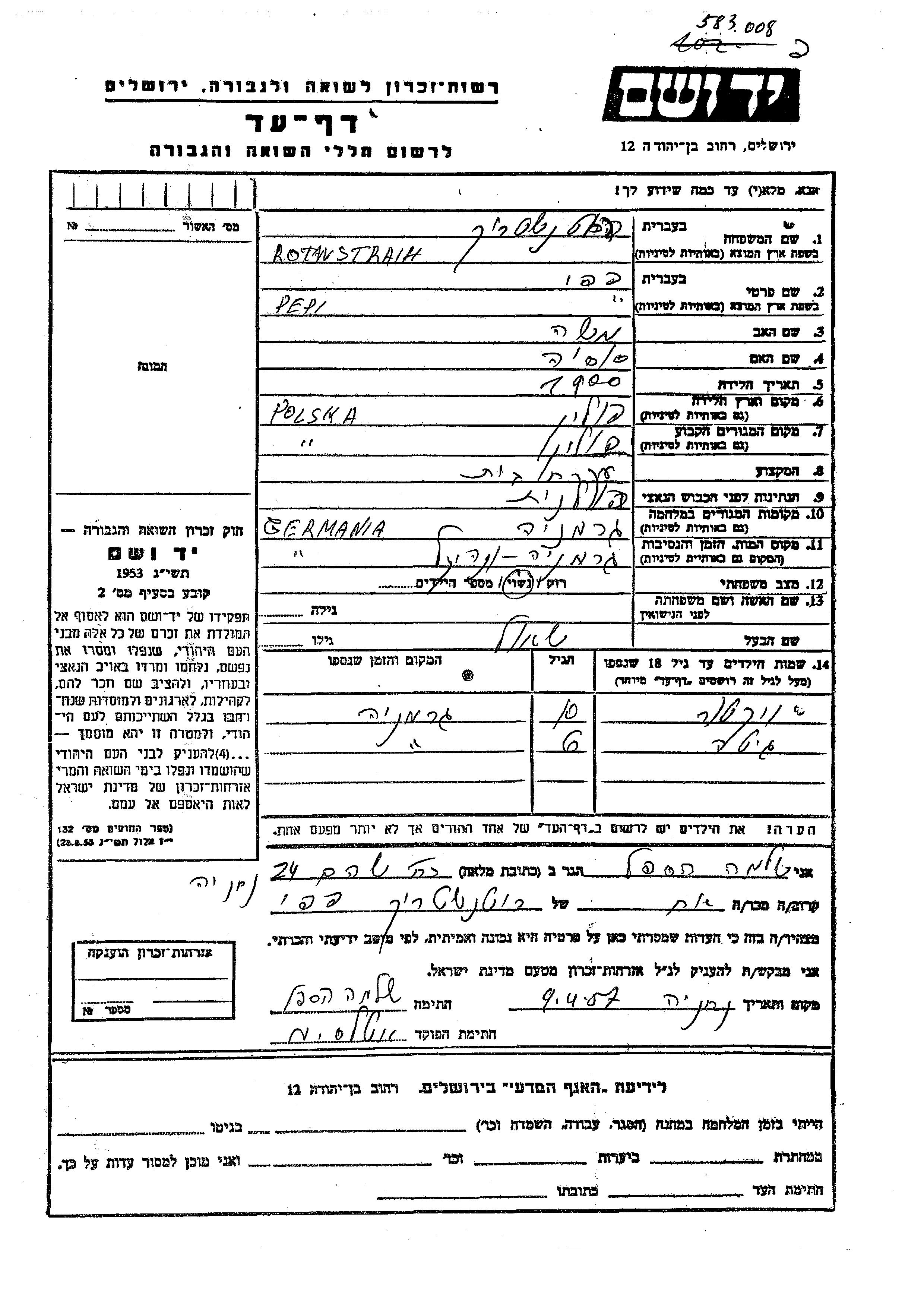 Yad Vashem - Pages of Testimony Names Memorial Collection
