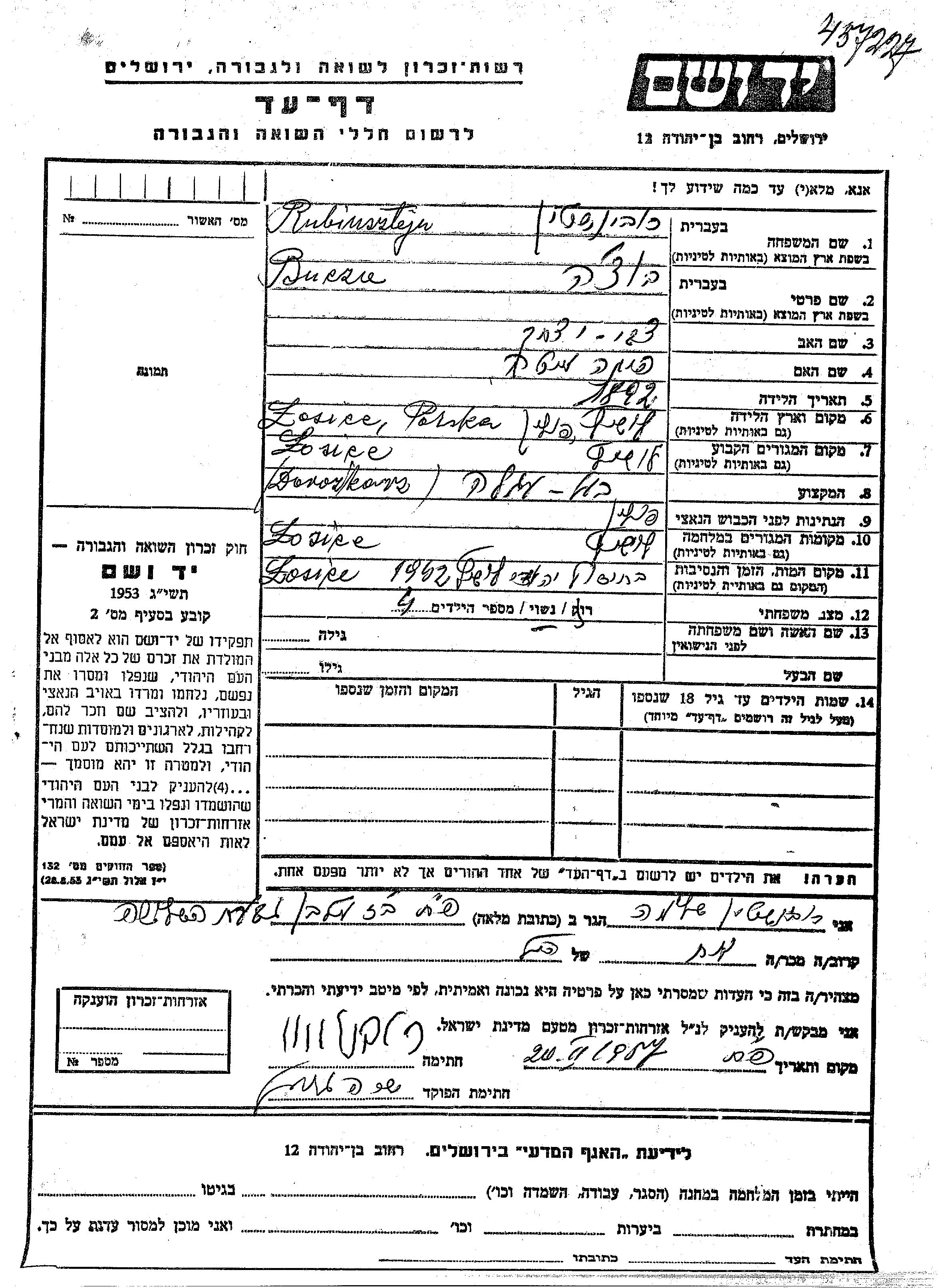 Yad Vashem - Pages of Testimony Names Memorial Collection