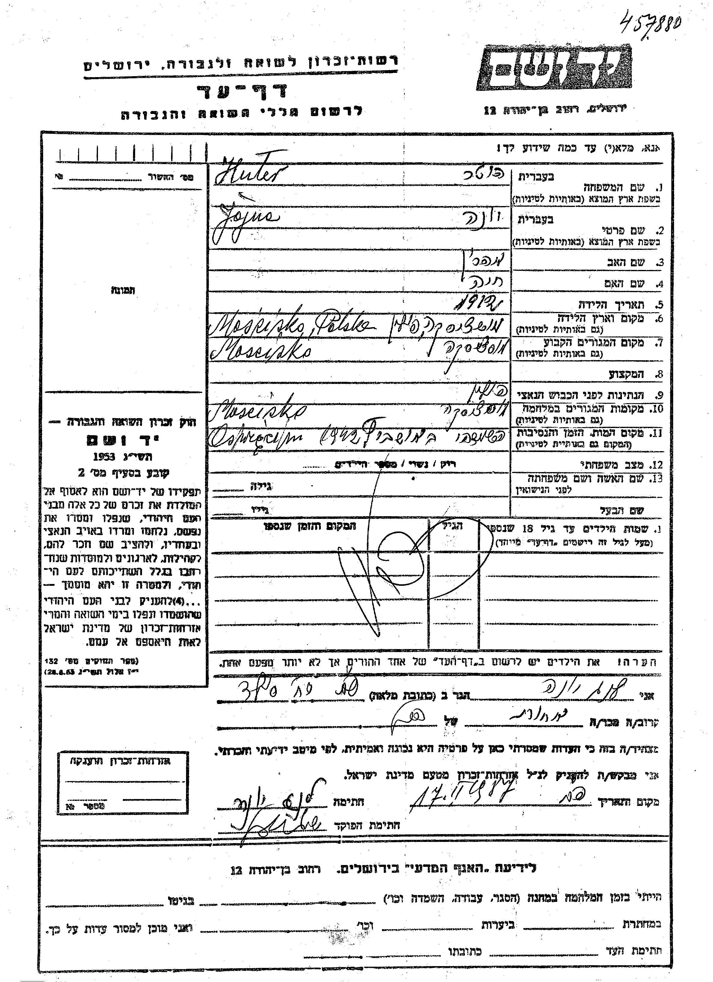 Yad Vashem - Pages of Testimony Names Memorial Collection