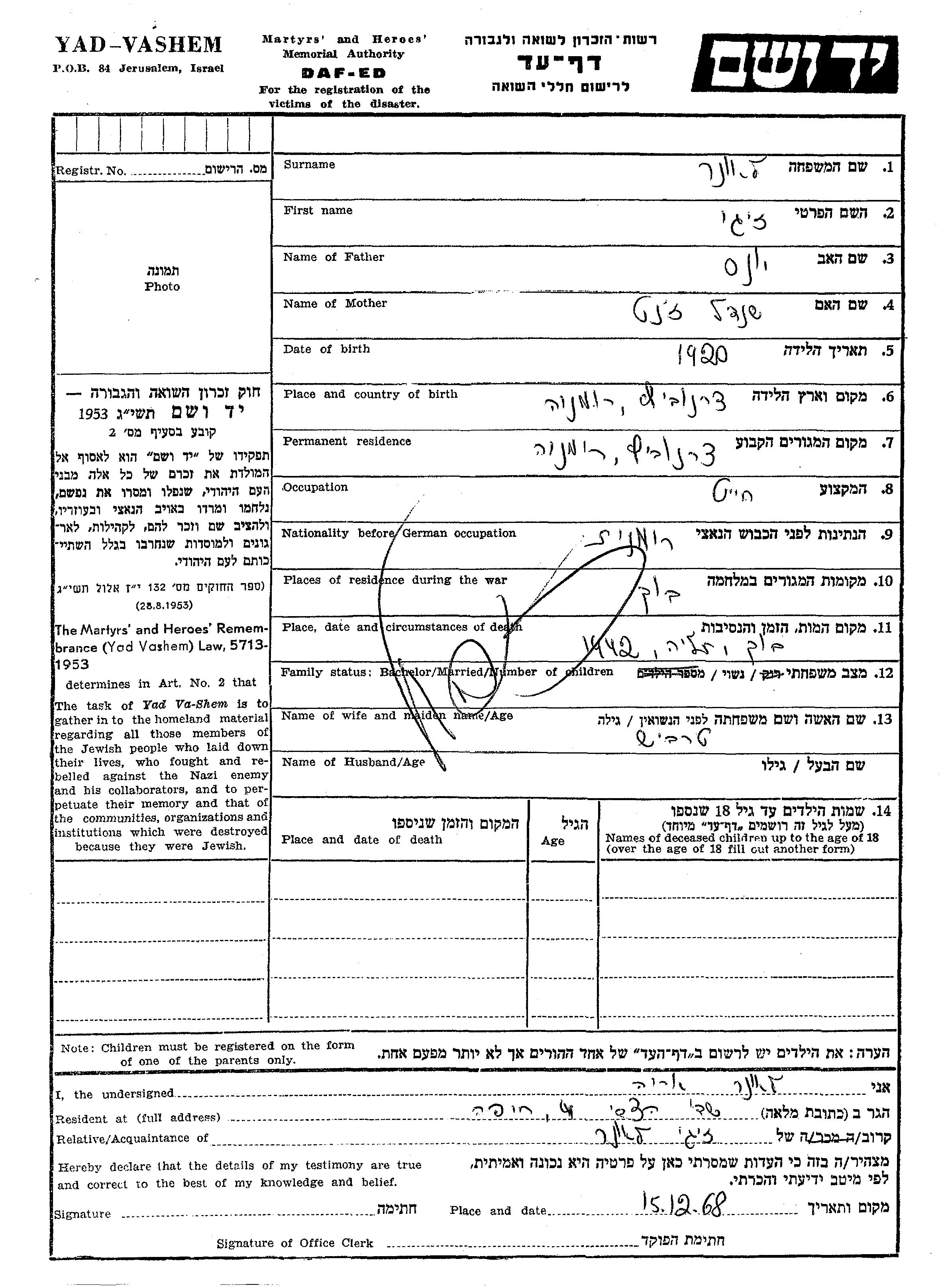 Yad Vashem - Pages of Testimony Names Memorial Collection