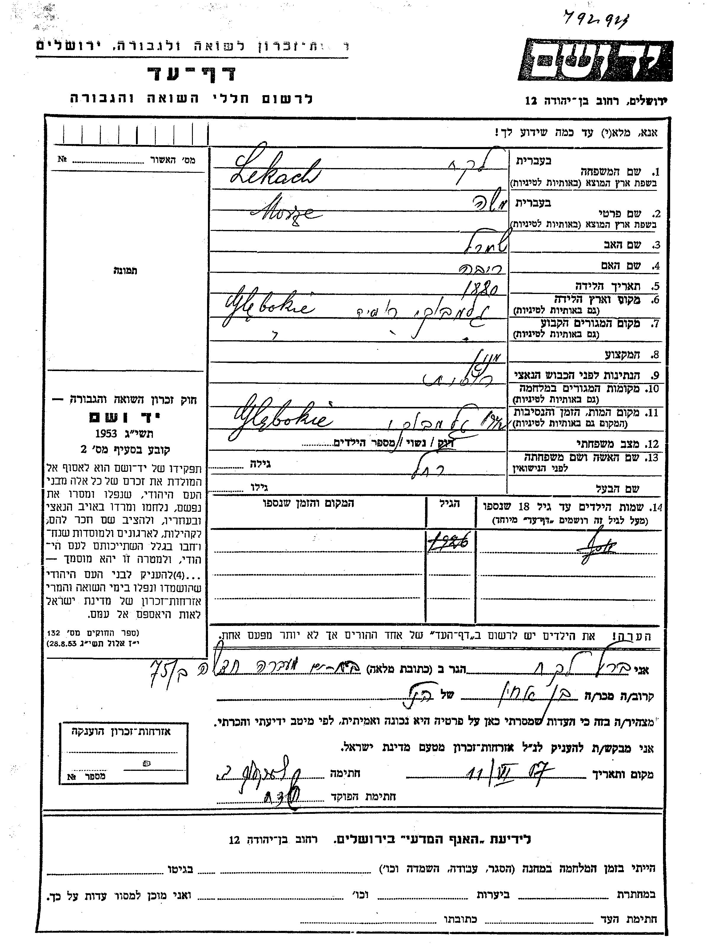 Recherche par nom du dépositeur de la Feuille de témoignage. Cette recherché indique aussi les noms de jeunes filles.
