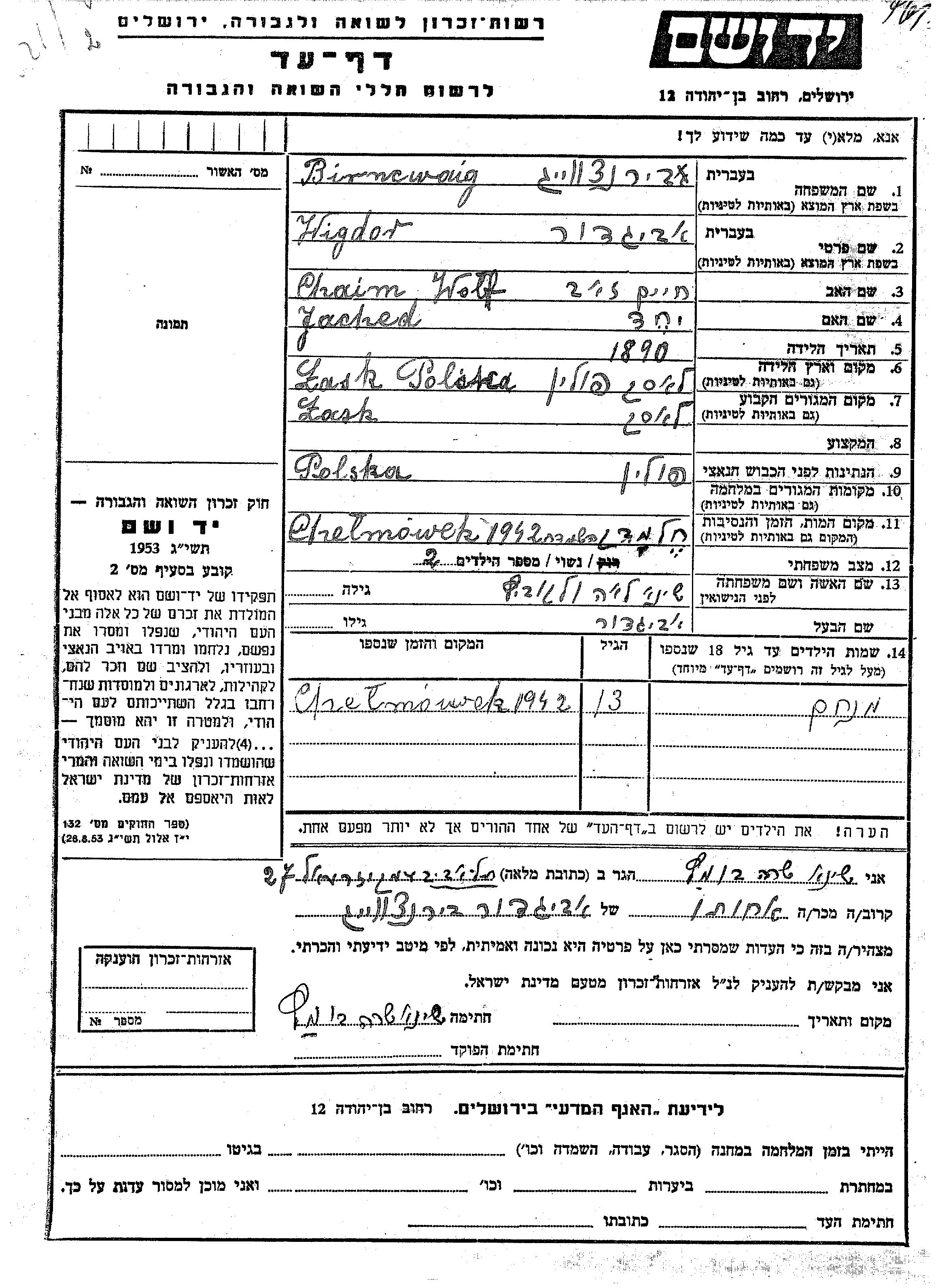 Yad Vashem - Pages of Testimony Names Memorial Collection