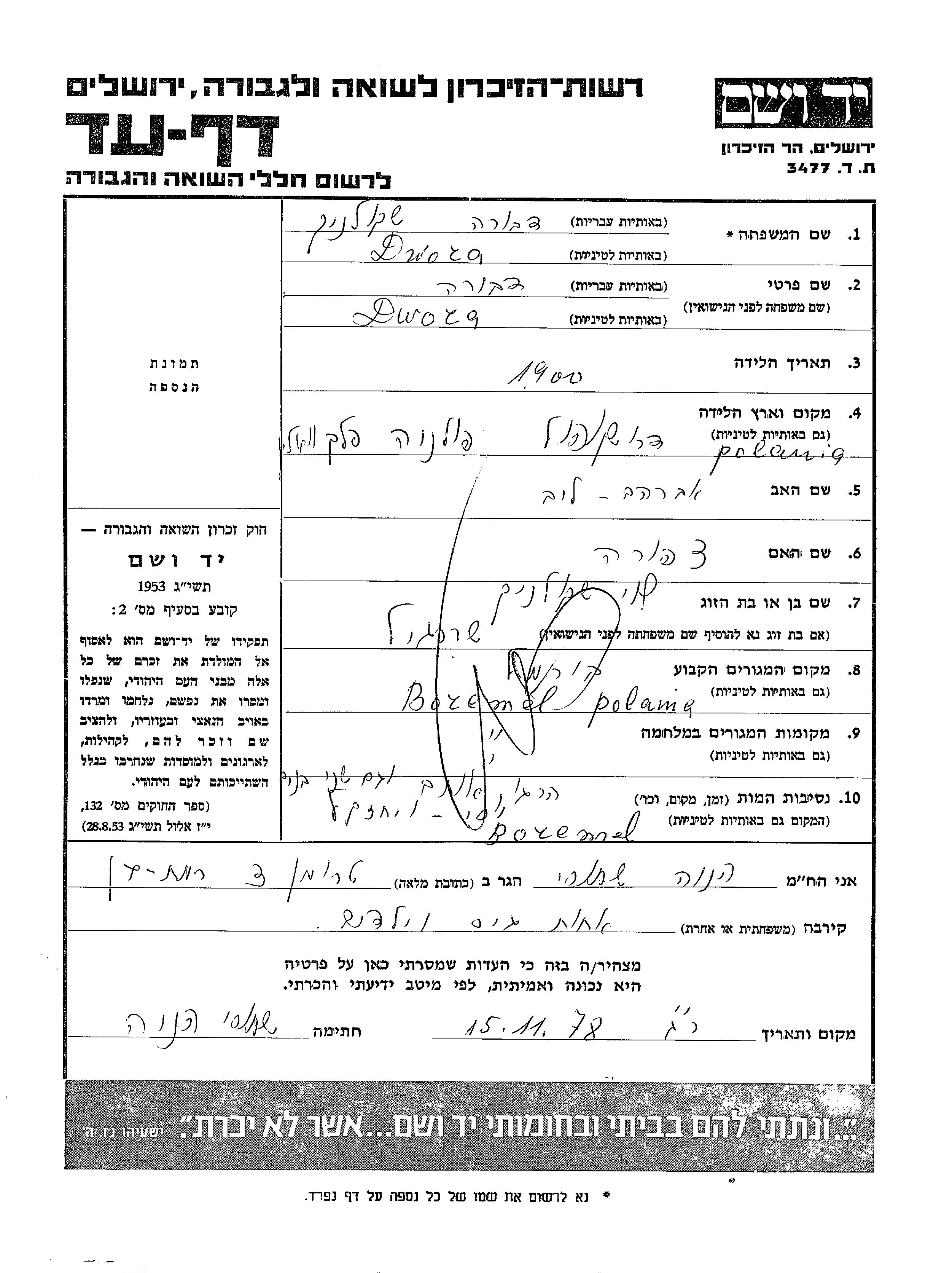 Yad Vashem - Pages of Testimony Names Memorial Collection