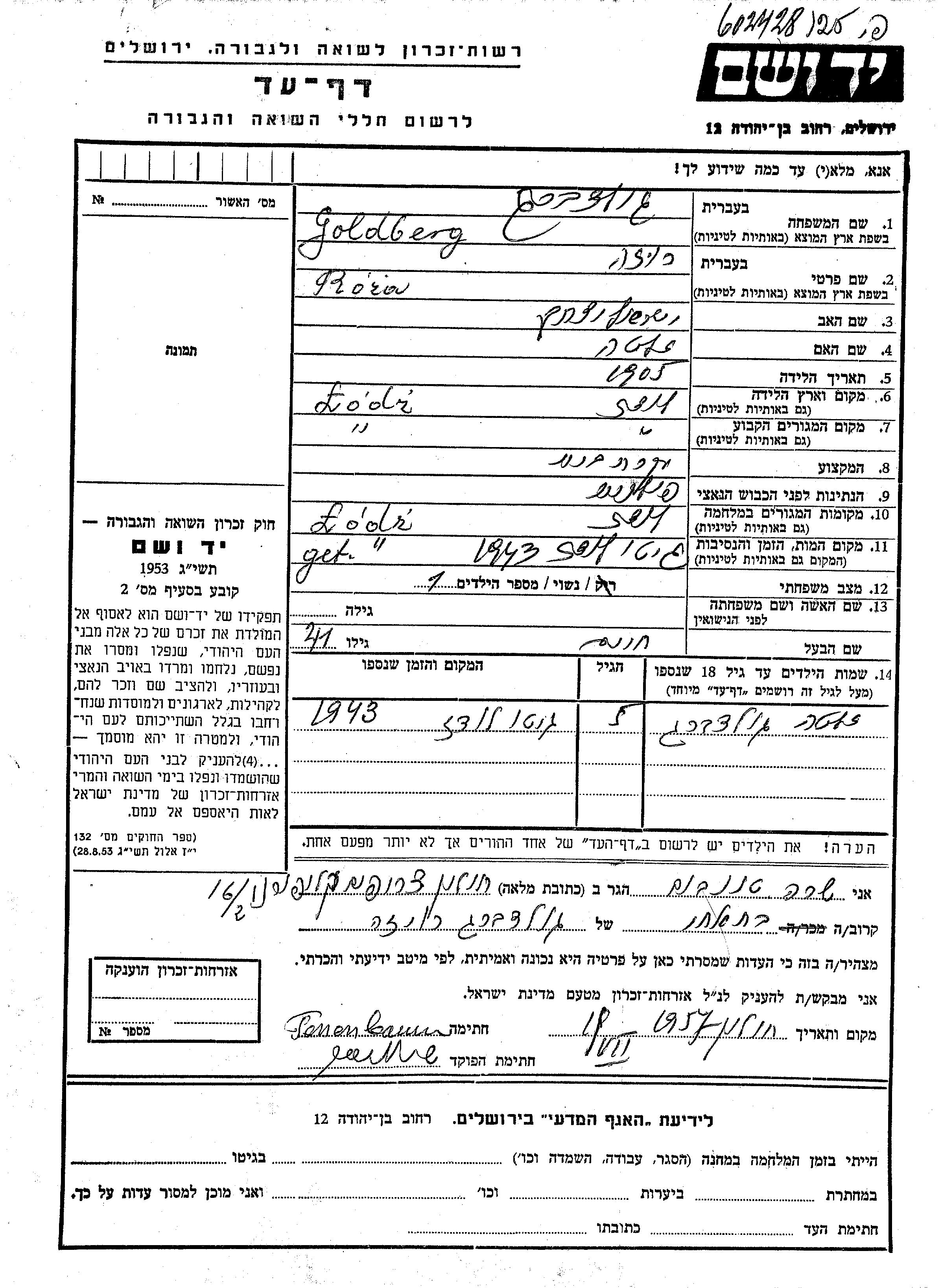 Yad Vashem - Pages of Testimony Names Memorial Collection