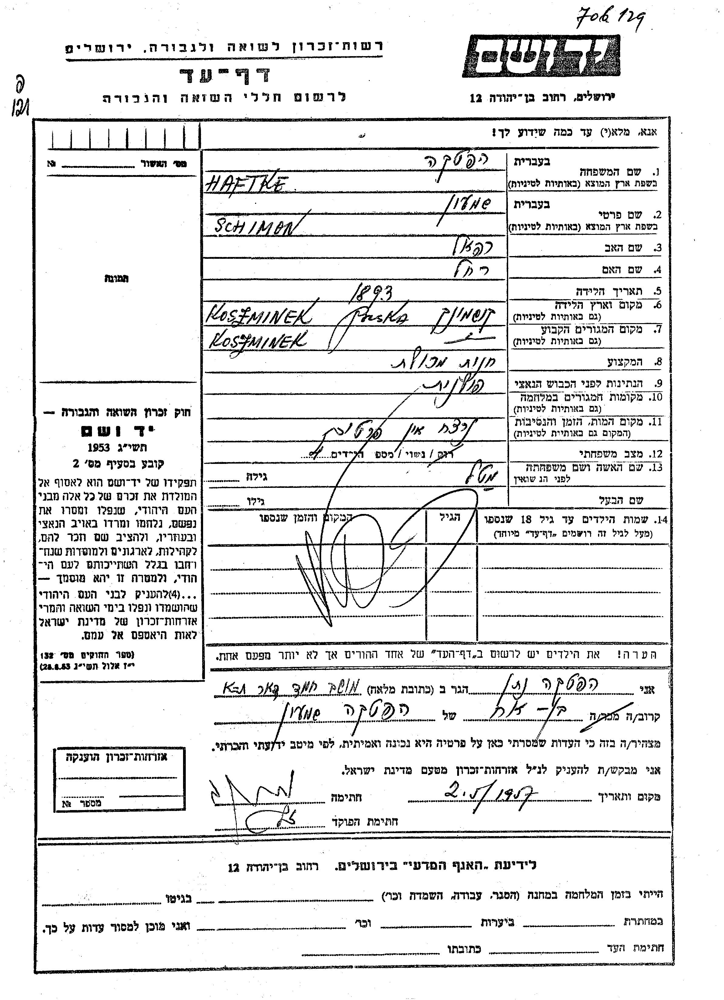 Yad Vashem - Pages of Testimony Names Memorial Collection