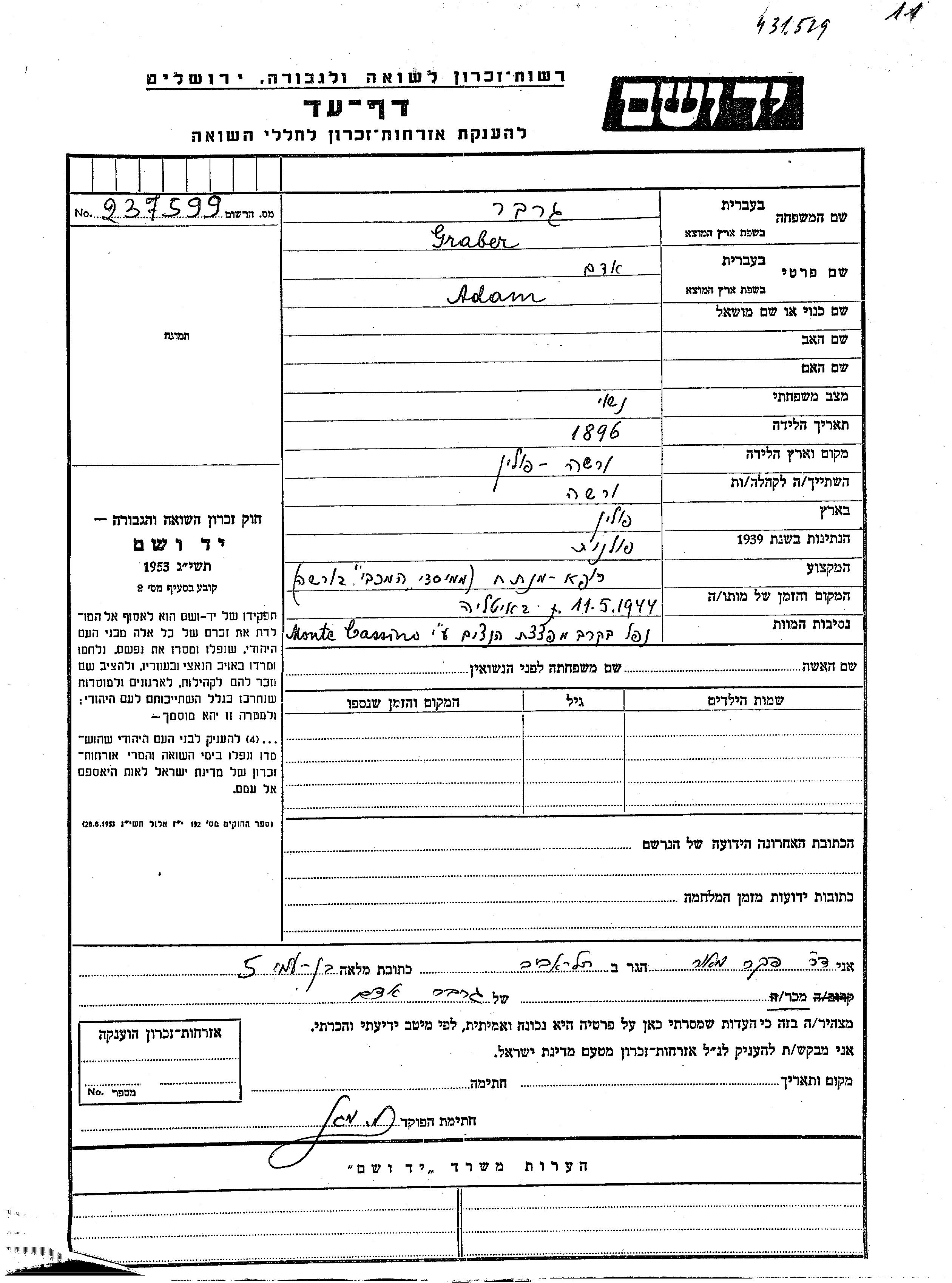 Adam a été assassiné pendant la Shoah. Lieu de la mort: Italie en 11/05/1944.
