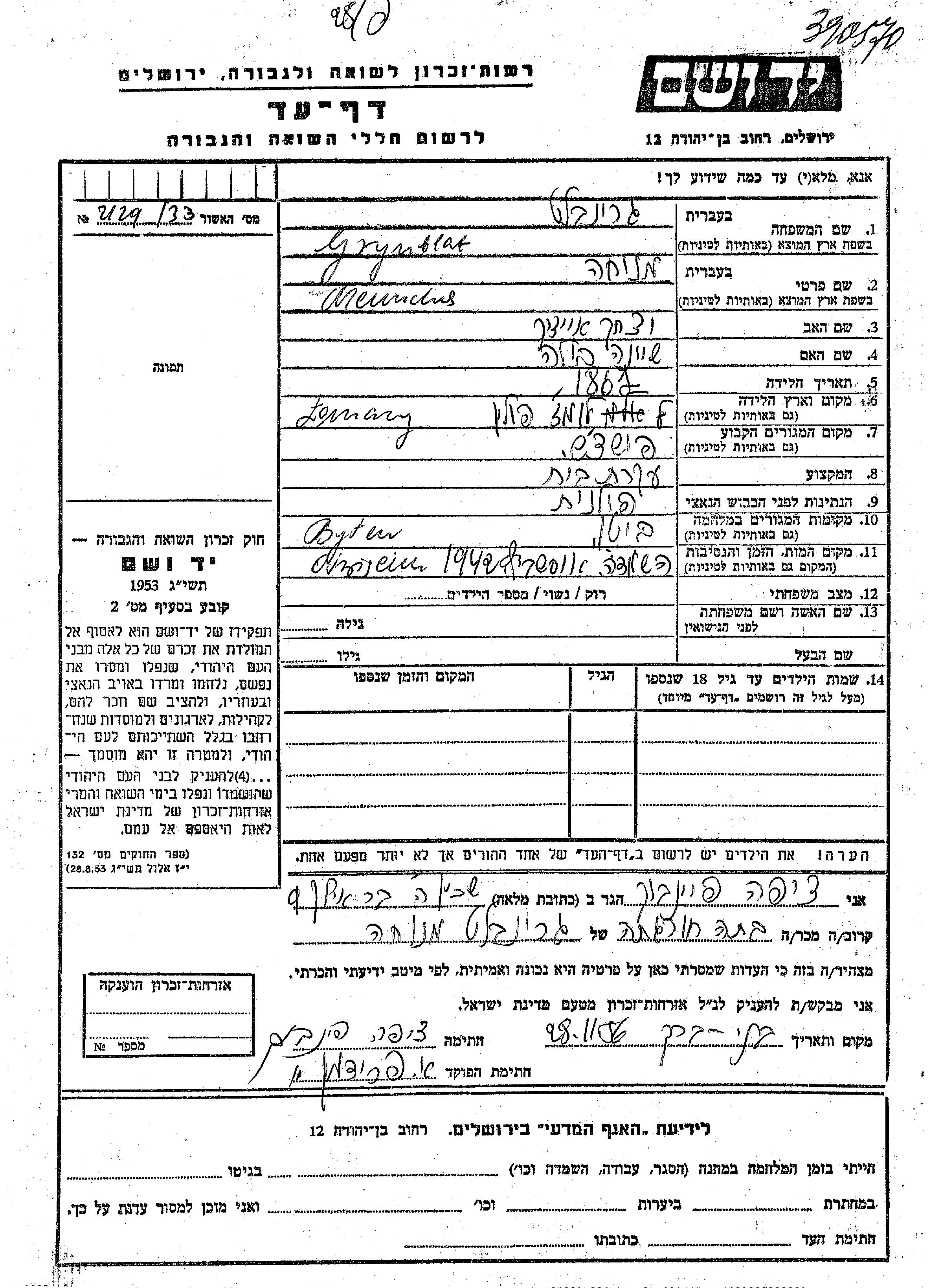 Yad Vashem - Pages of Testimony Names Memorial Collection
