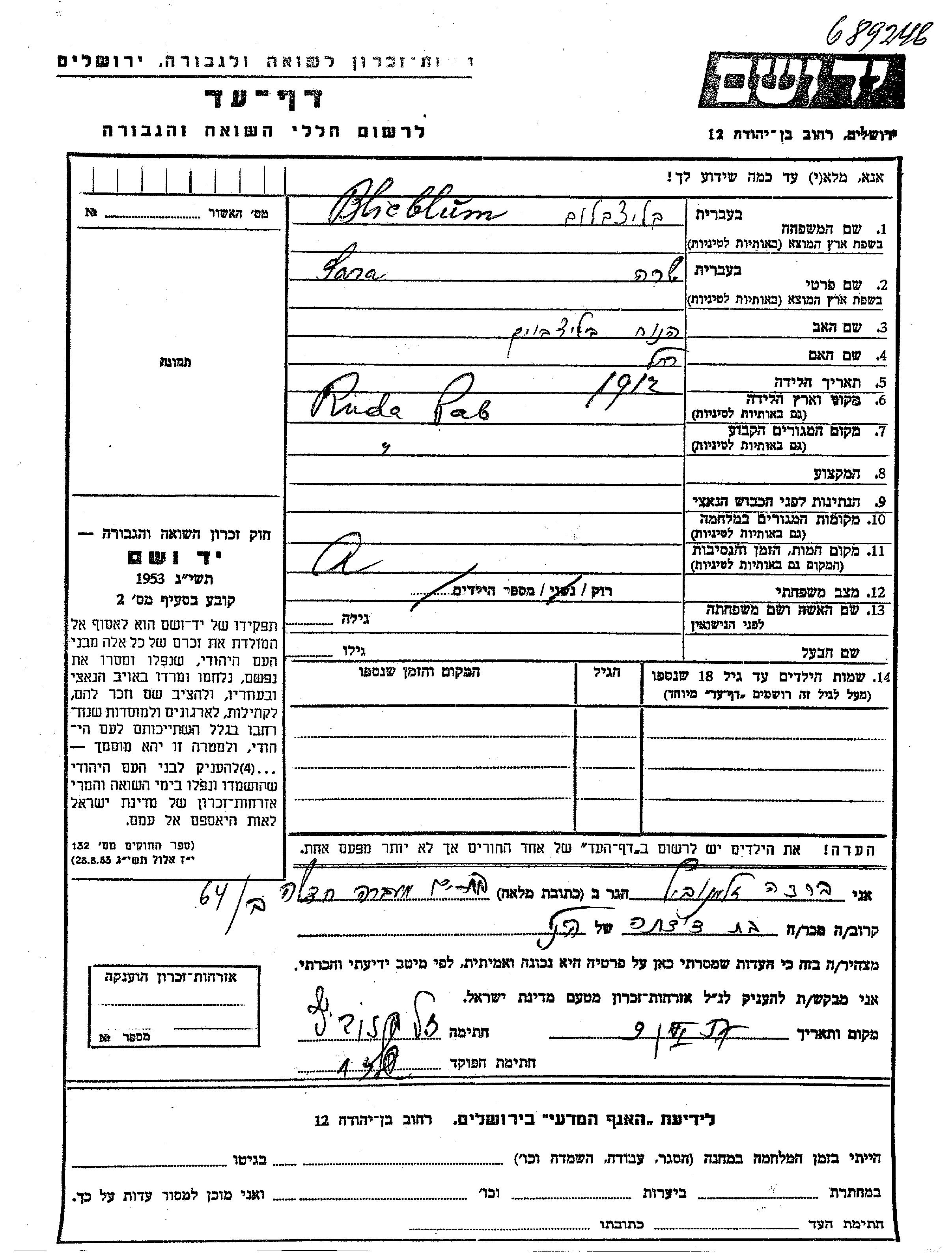 Recherche par lieu de résidence permanente avant la Shoah, ville, village, département, région ou pays.