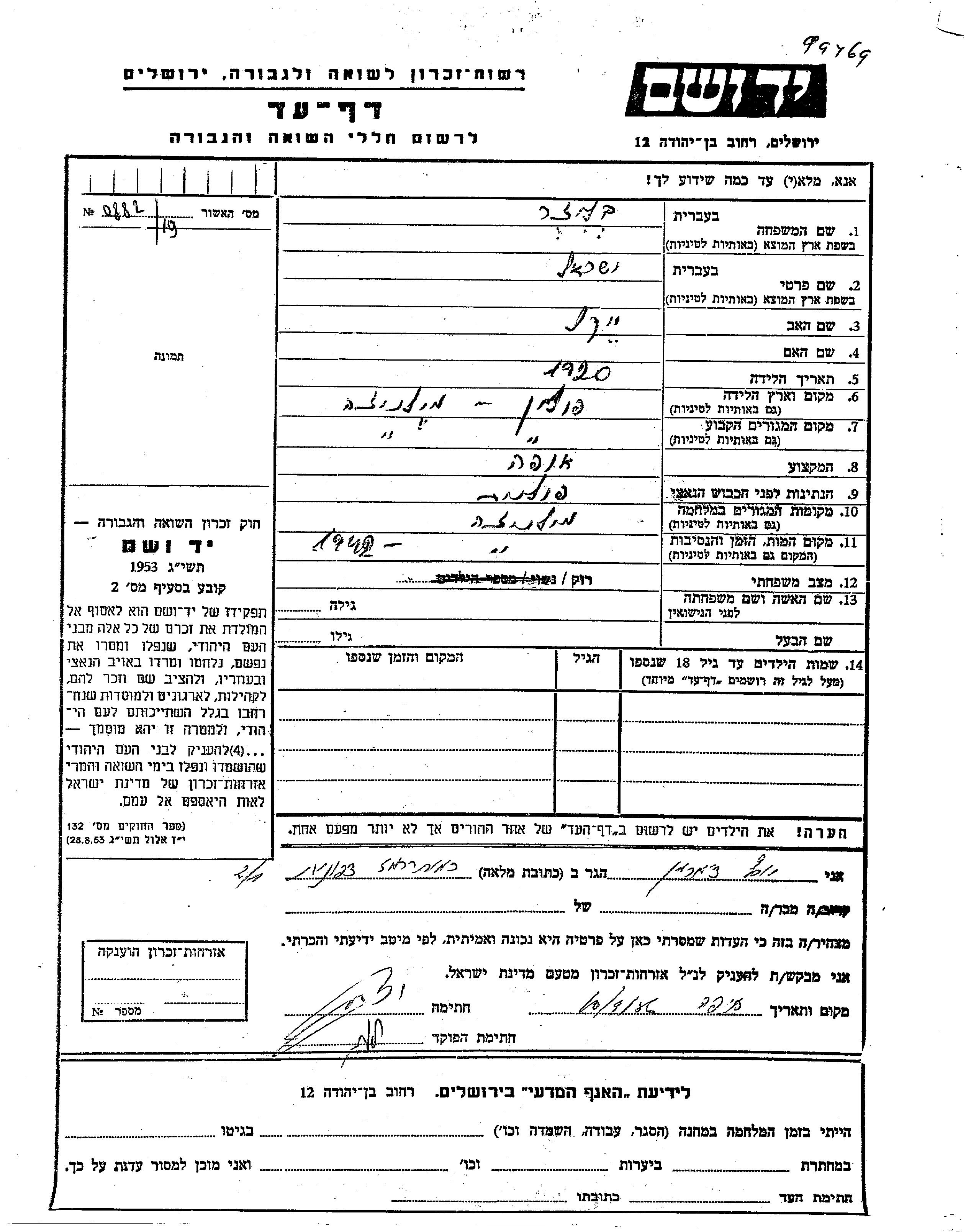 Yad Vashem - Pages of Testimony Names Memorial Collection
