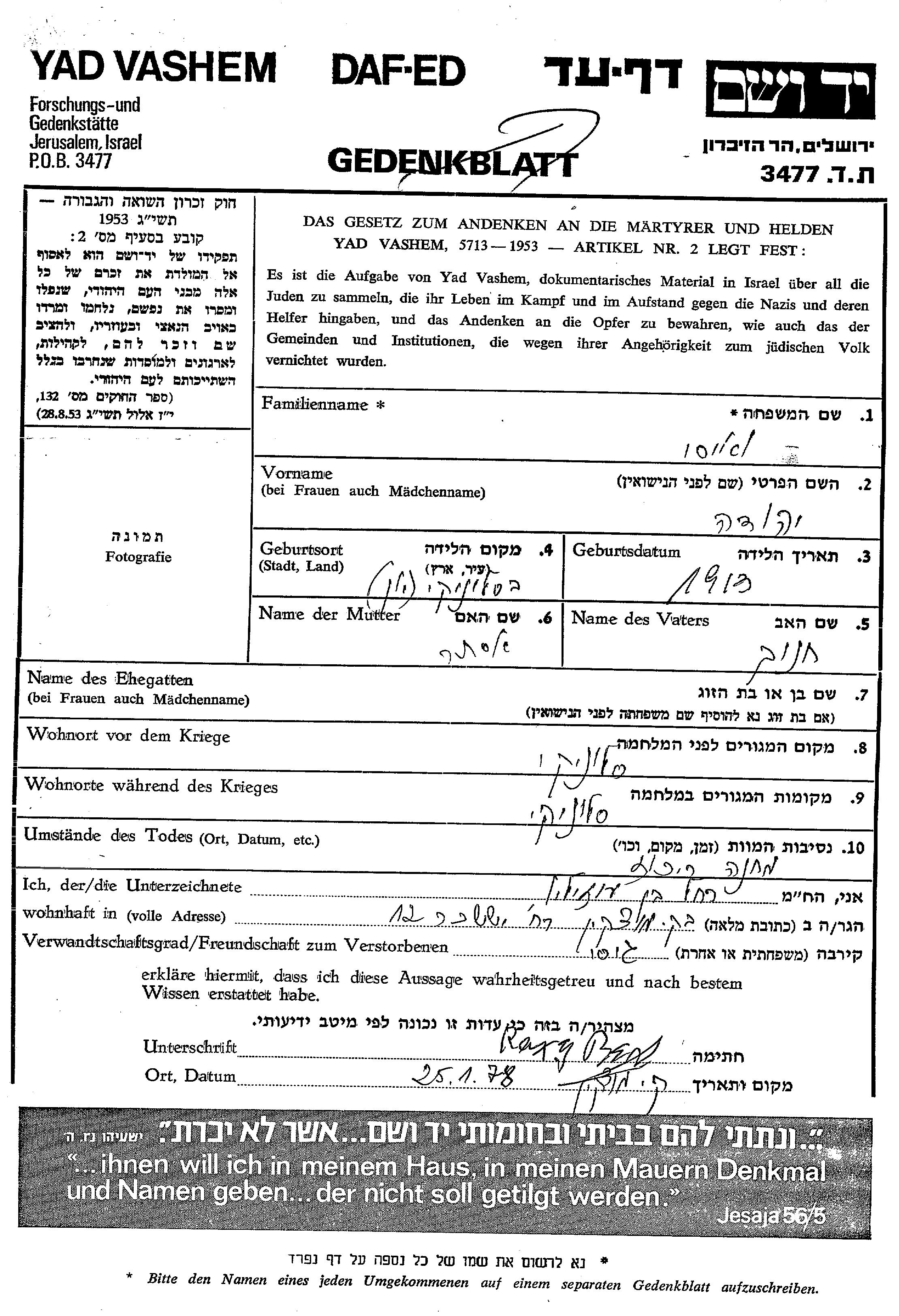 Yad Vashem - Pages of Testimony Names Memorial Collection