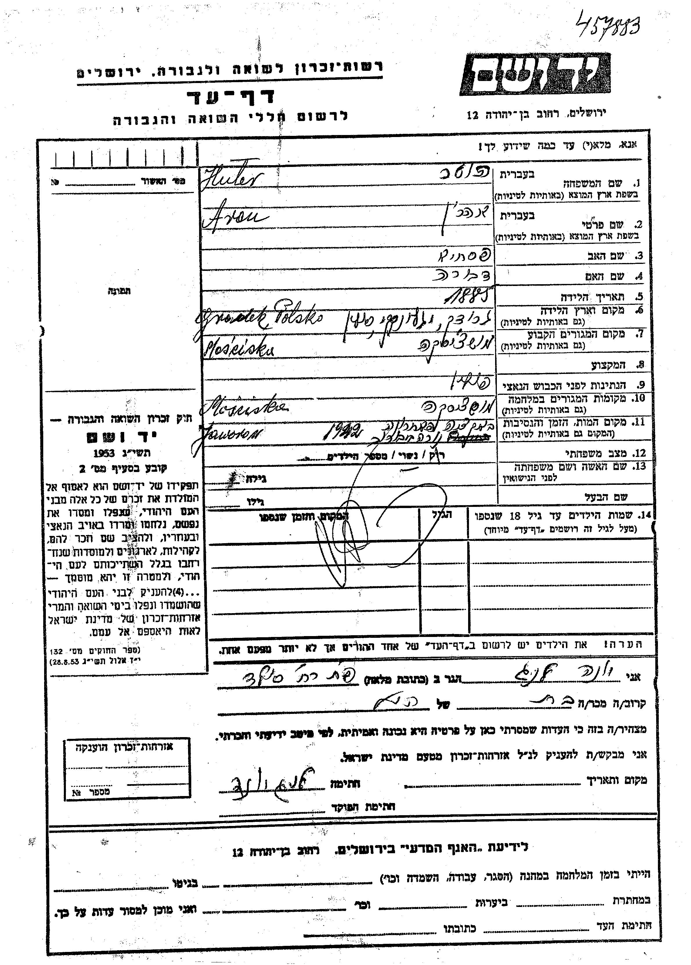 Yad Vashem - Pages of Testimony Names Memorial Collection