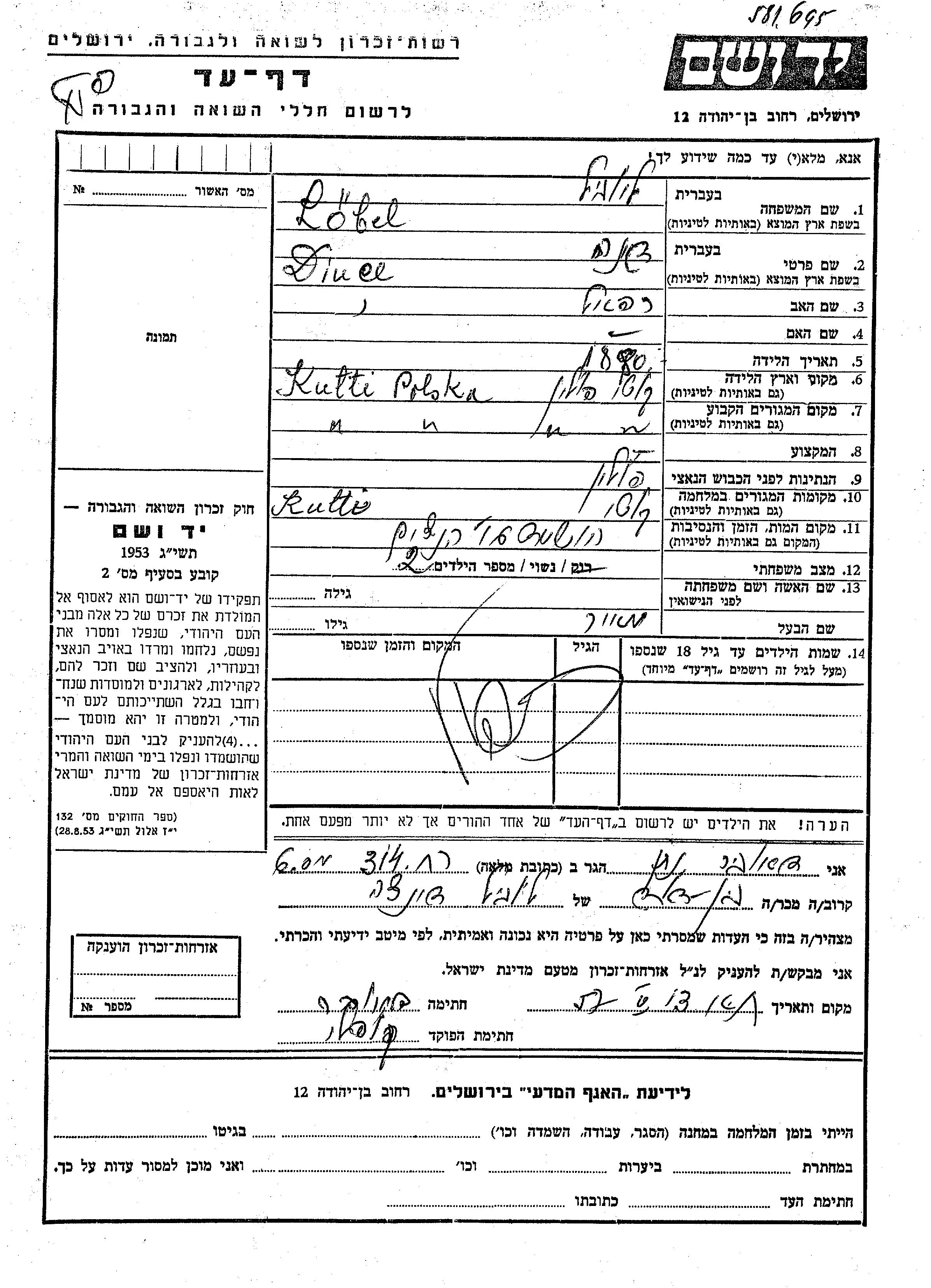 Yad Vashem - Pages of Testimony Names Memorial Collection