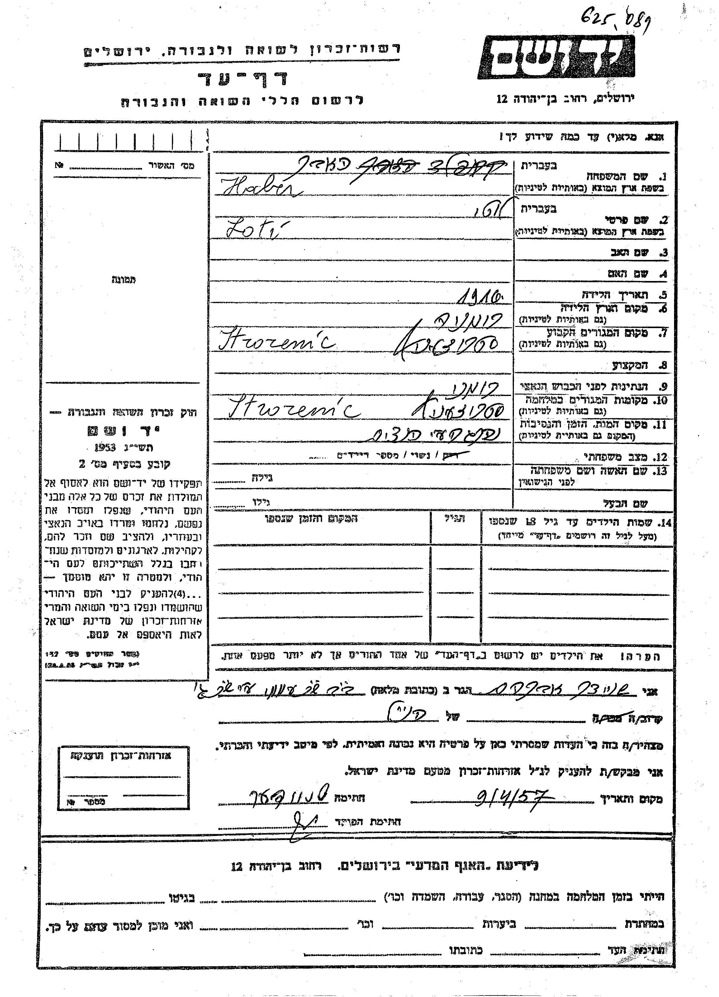 Yad Vashem - Pages of Testimony Names Memorial Collection