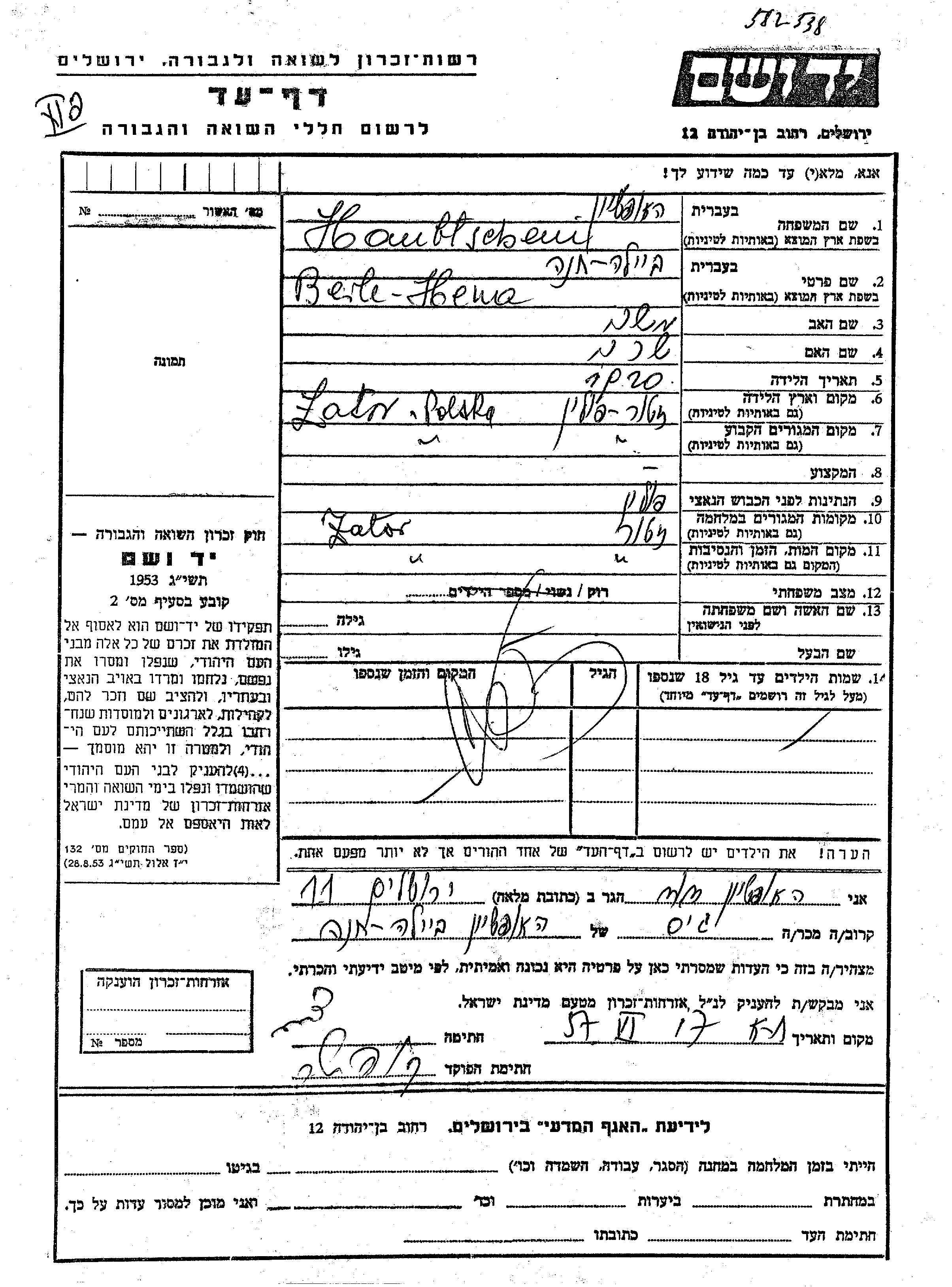 Yad Vashem - Pages of Testimony Names Memorial Collection