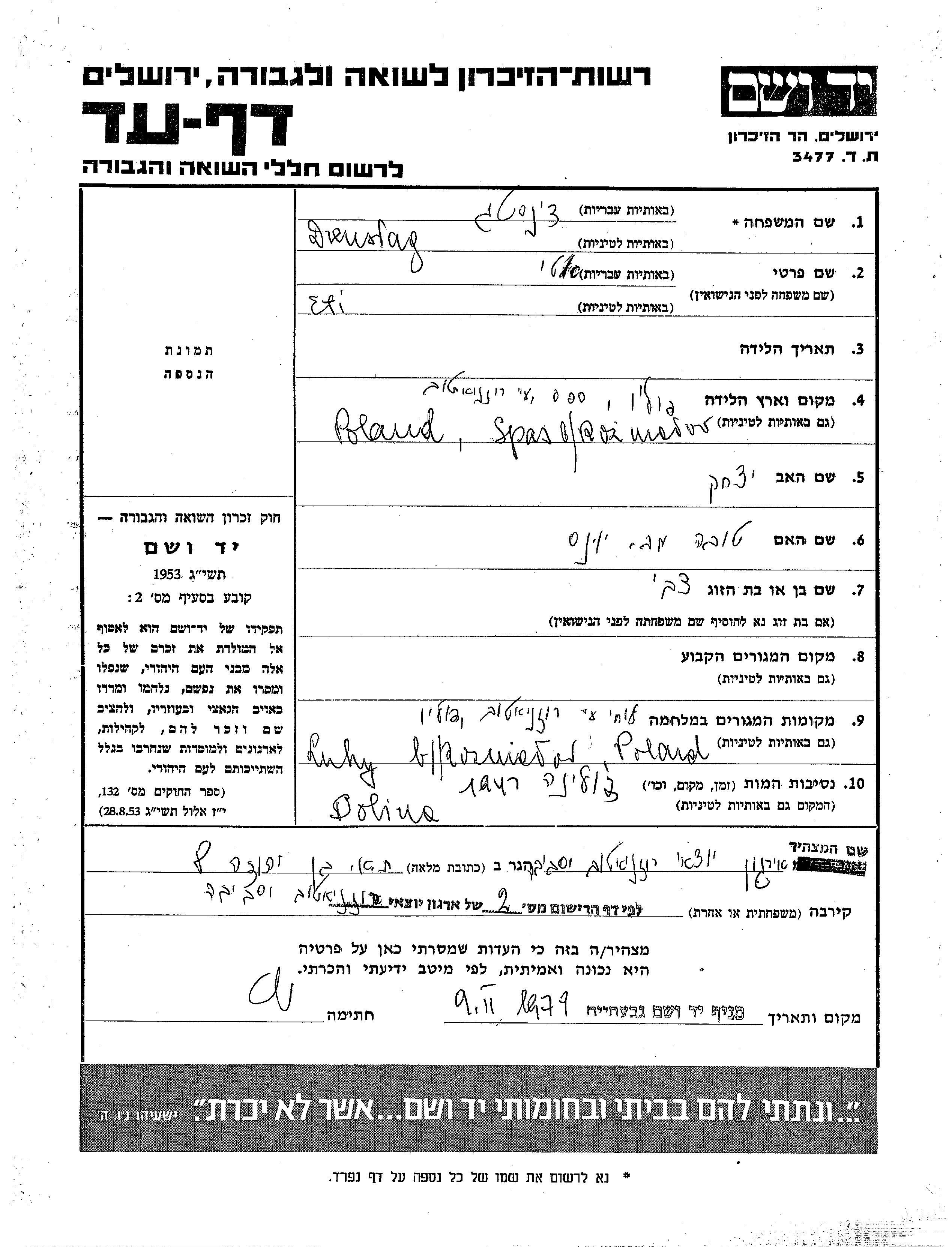 Yad Vashem - Pages of Testimony Names Memorial Collection