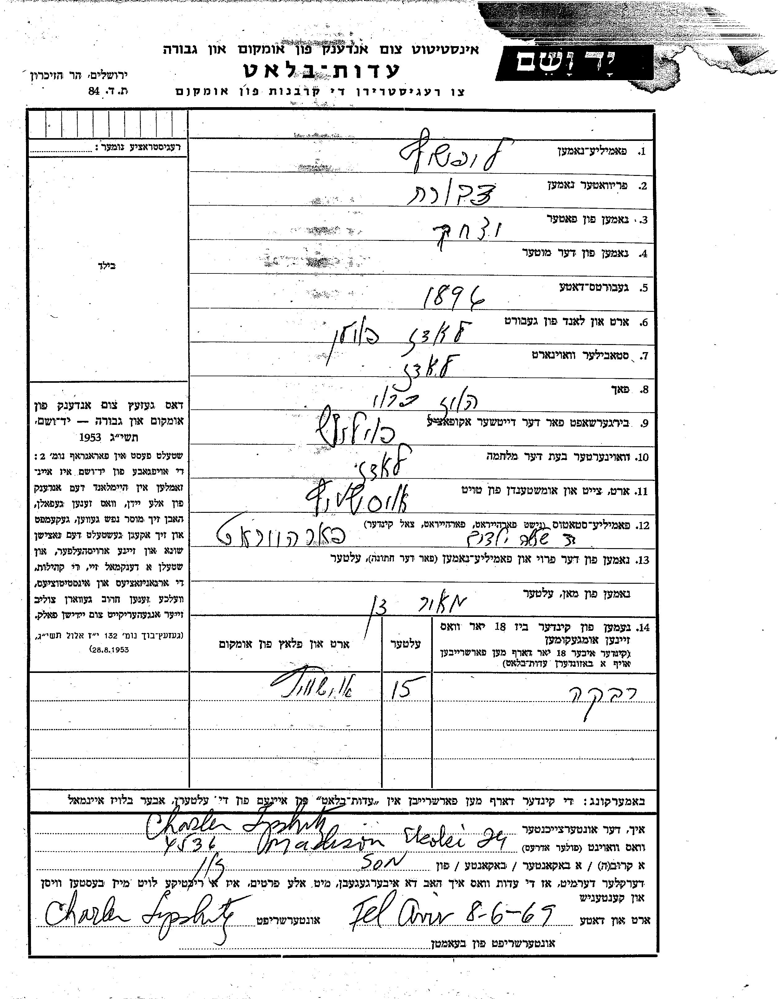 Lifshitz Dvora 1894 Lodz, Pologne Feuille de témoignage